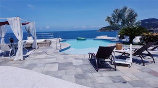 Magnificent Luxury Home 360-degree ocean view at the city of Guarujá,São Paulo,Brazil.Three floors mansion built in extraordinary location,overlooking the sea,at the Coast,solid construction,designed w 2 fronts,facing the sea,and Atlantic Forest,w most extraordinary views.All work was built with bricks of pottery to maintain the temperature according to the climate Walls built with natural stones extracted from the land itself transforming architecture,elegant contemporary contrasts w fine finishes,facada w natural stones(canjiquinha),10 suites,whirlpools,panoramic elevator,social room Greek Piguês marble flooring,security system,monitored w cameras and guardhouse,1.600 sqm² built.(17.222 SF).R$25,000,000.00 (Reals).