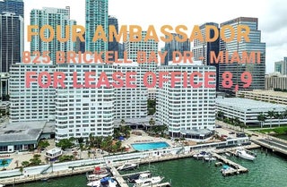 Four Ambassador Building. Really the Best Location In Brickell. Water Front, 2 Blocks from City Center. Price reduced from 1,800 to 1,600. The total size of this office is 800 SF. 1 Private Offices ( offices 8, has the size of 500 SF, with individual direct access to outside in the mezzanine level. No need to take elevator. Also include shared modern conference room size 400 SF; Kitchen, Lobby, bathroom (all three size 450 SF). This office can be used up to 5 people, Term 12-60 months lease, Price is the best in Brickell only $ 1,600 per month plus government sales taxes 6,5 %. Please send a WhatsApp or text message for video and request easy showing. Prices Includes, Electricity, Property Taxes, Condominium, Cleaning, Internet and use of amenities; gym, Jacuzzi, pool.