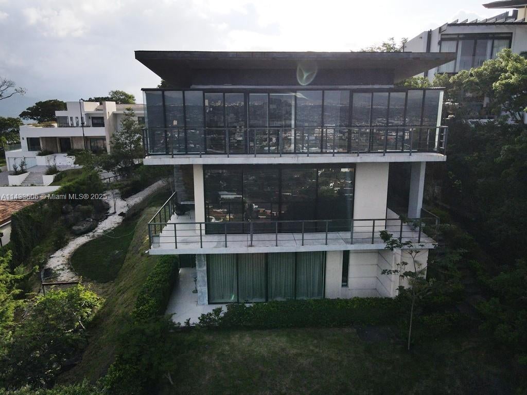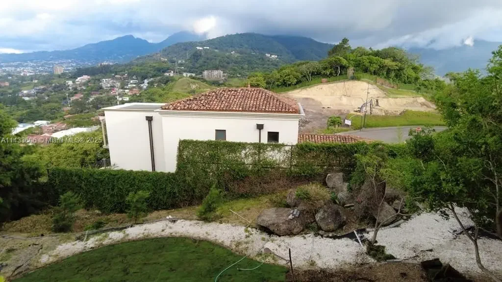 Stunning 3-story house in Cerro Real, Alto Las Palomas, Costa Rica. Breathtaking panoramic views from every level. Modern architecture harmonizes with natural surroundings. 3rd floor features 3 spacious bedrooms each w/ensuite bathrooms and open balcony including the primary bedroom and a large family room. 2nd floor entry level with open concept living & kitchen area along with maid's quarter. Studio guesthouse on ground floor with private entrance. Outdoor courtyard between 3 car garage with grass roof top & the house with large U-shaped open balcony for enjoying the views and the breeze. Enjoy outdoor living with a lush Japanese style garden and walkway & saltwater pool. Gated community with top-notch security. Embrace luxury & tranquility in this exclusive hilltop Costa Rican gem.