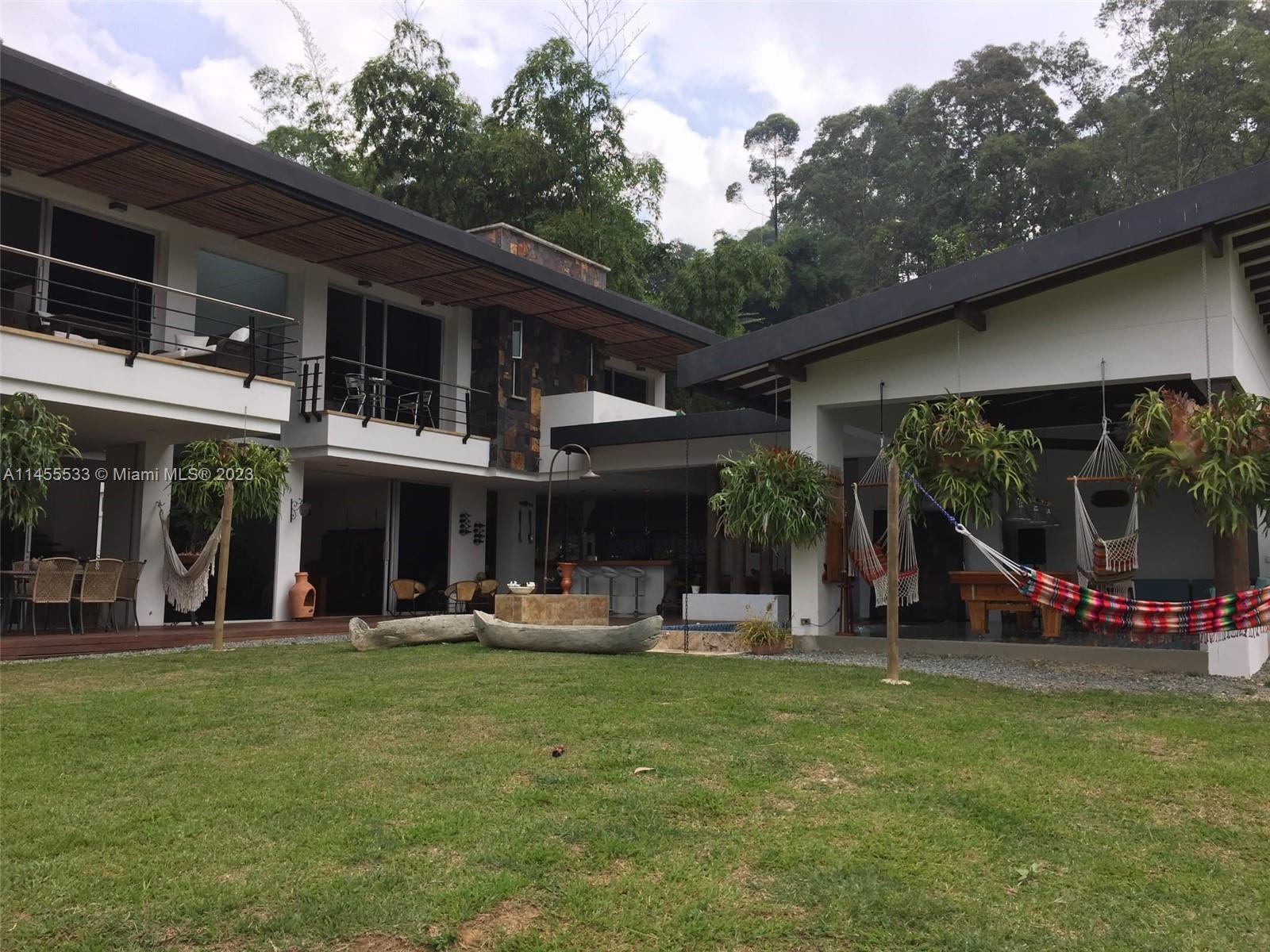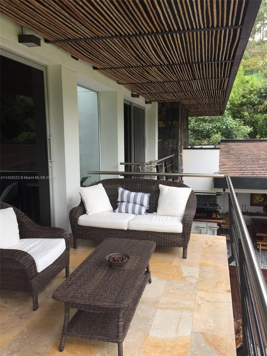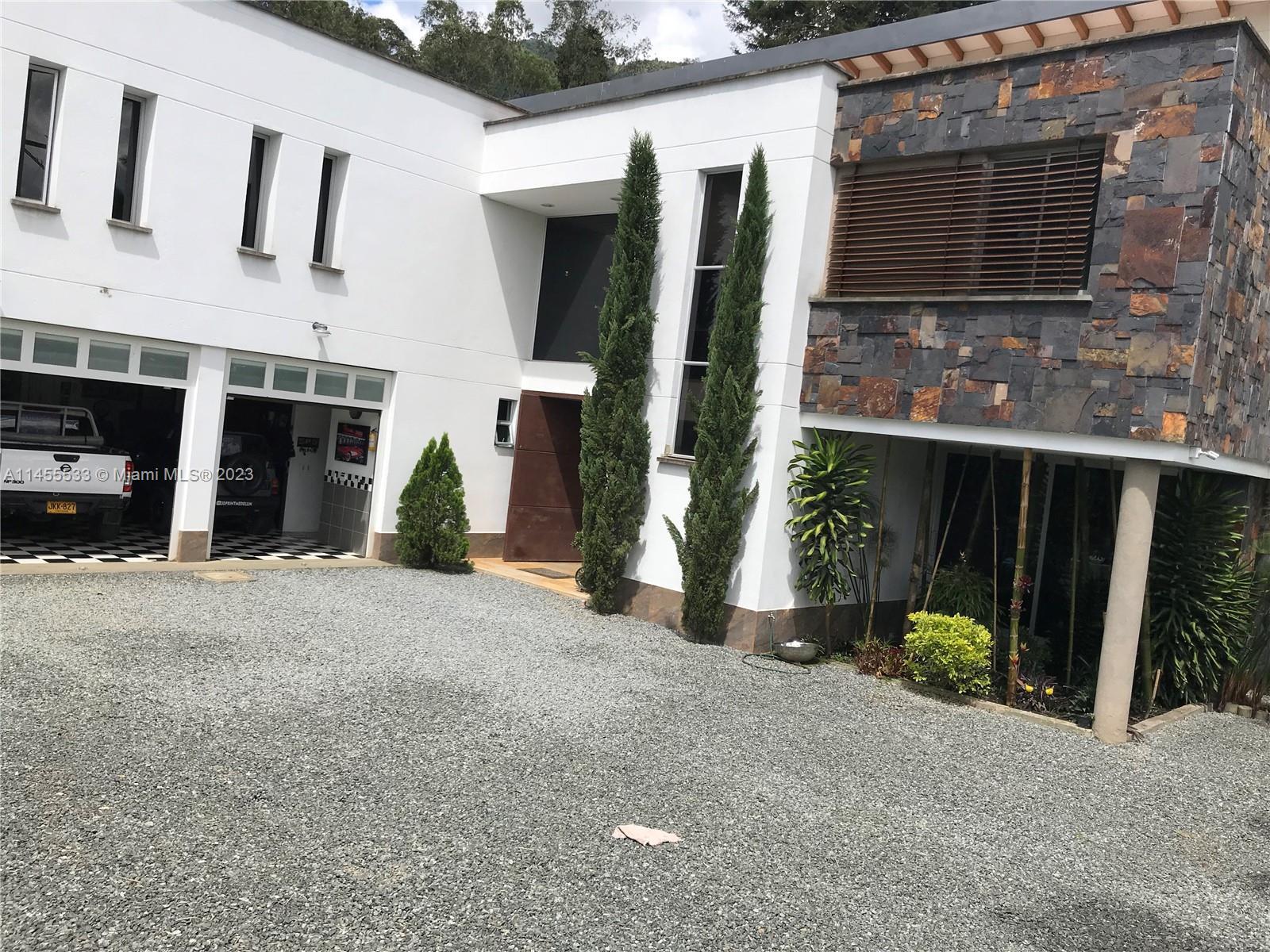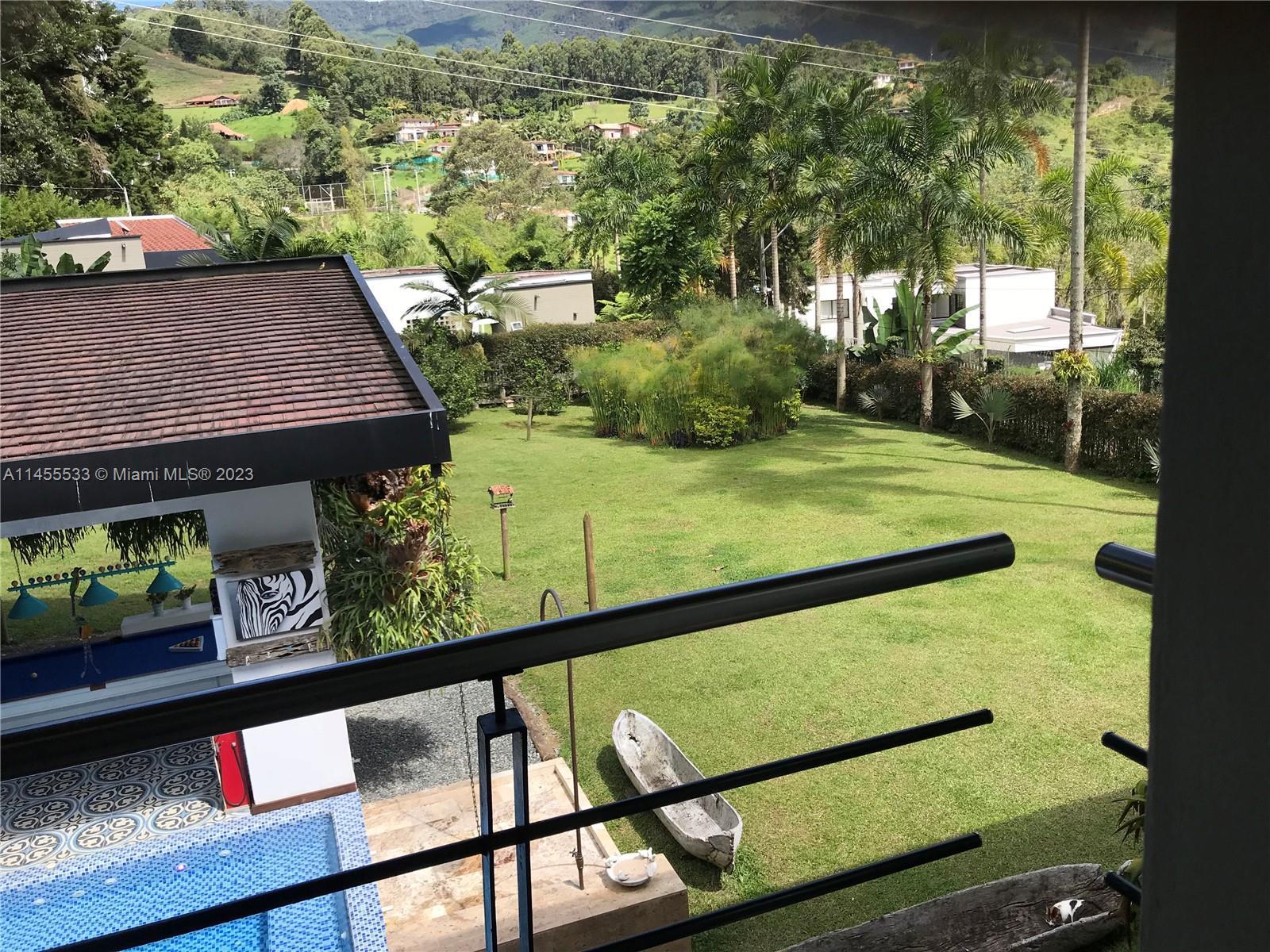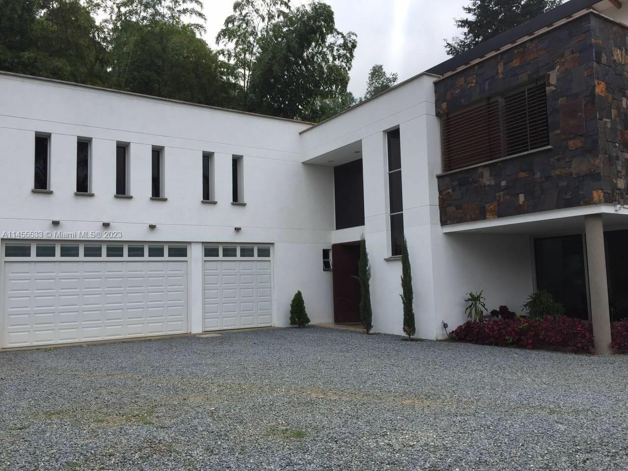 Just 7 minutes from Envigado's park, with views of the mountains, this beautiful country house has 2555 meters of land and a construction of 600m2, 2 levels, 4 bedrooms all with bathroom and dressing room, 3 of them with balcony, 2 living rooms, linen closet, full kitchen, additional kitchen with stove and wood oven as well as barbecue, jacuzzi for 20-25 people, reflecting pool, staging area and games area, wooden deck, gas fireplace, space for an elevator (elevator not included), beautiful gardens with fruit and a volleyball court, covered garage for three vehicles and open garage for 20 more, American gardening house, studio apartment with independent entrance ideal for butlers, laundry patio. in total 8 bathrooms, incredible luxury finishes.