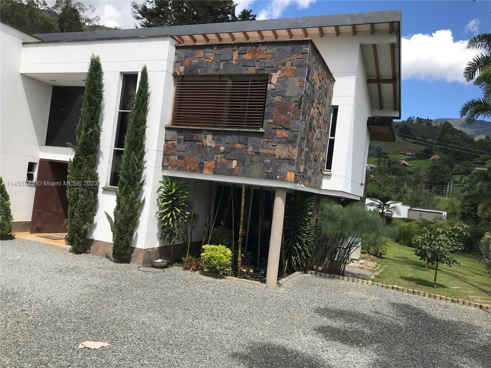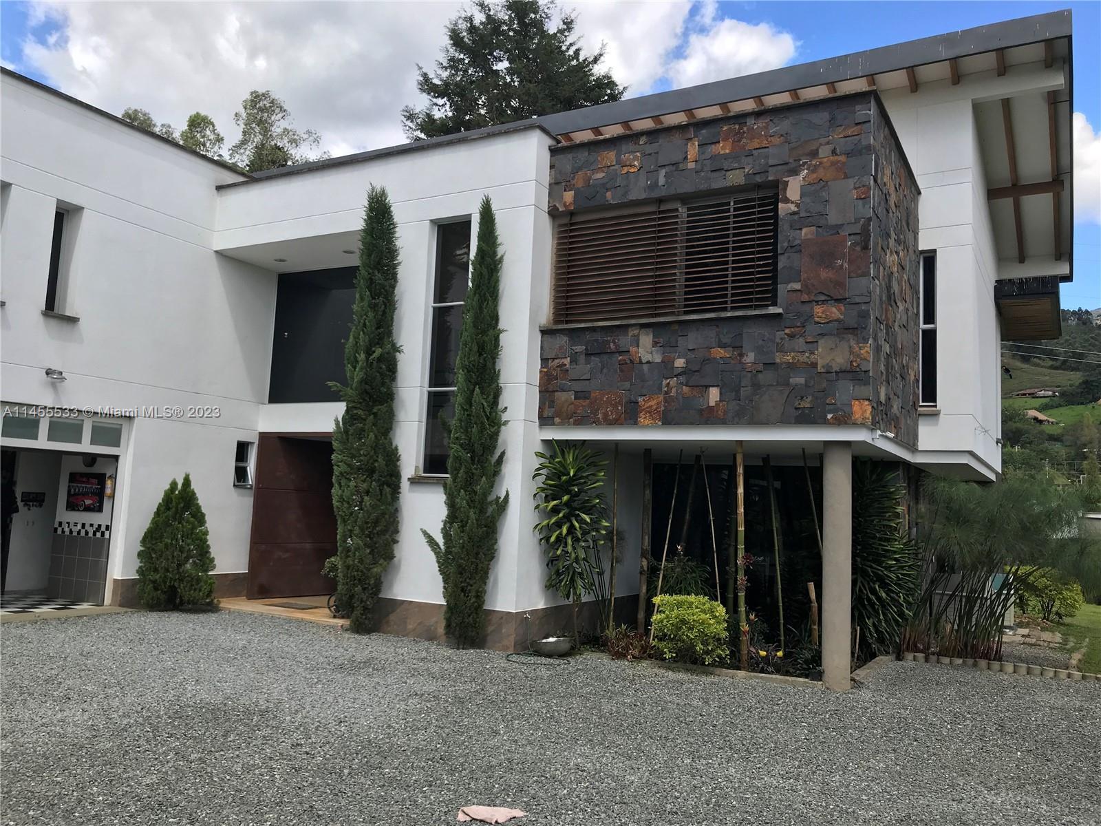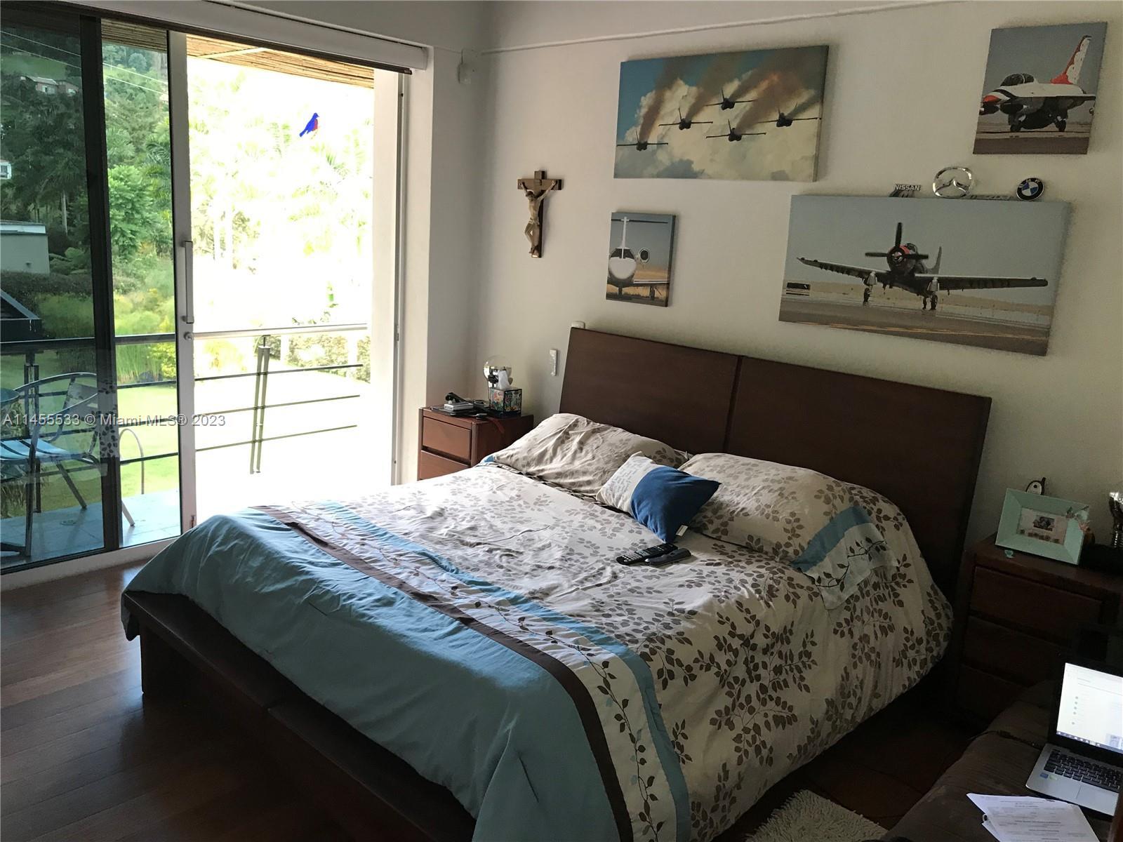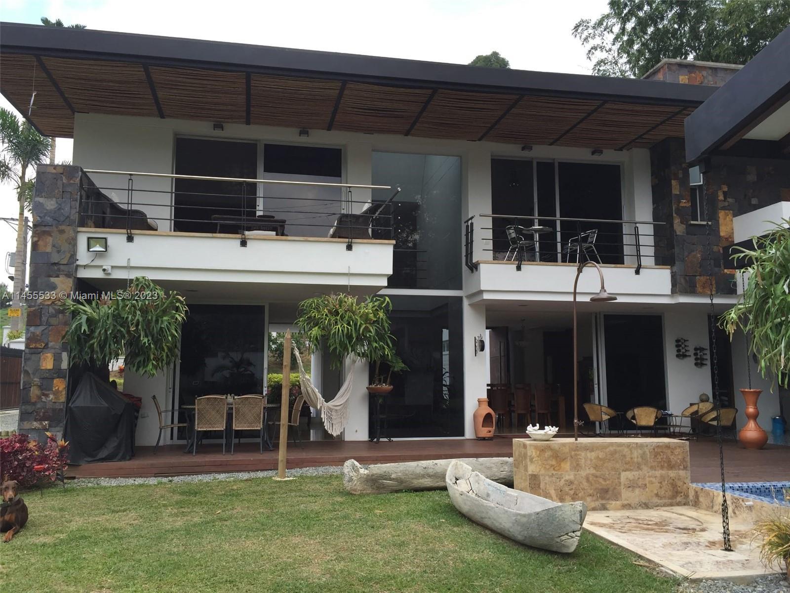Just 7 minutes from Envigado's park, with views of the mountains, this beautiful country house has 2555 meters of land and a construction of 600m2, 2 levels, 4 bedrooms all with bathroom and dressing room, 3 of them with balcony, 2 living rooms, linen closet, full kitchen, additional kitchen with stove and wood oven as well as barbecue, jacuzzi for 20-25 people, reflecting pool, staging area and games area, wooden deck, gas fireplace, space for an elevator (elevator not included), beautiful gardens with fruit and a volleyball court, covered garage for three vehicles and open garage for 20 more, American gardening house, studio apartment with independent entrance ideal for butlers, laundry patio. in total 8 bathrooms, incredible luxury finishes.