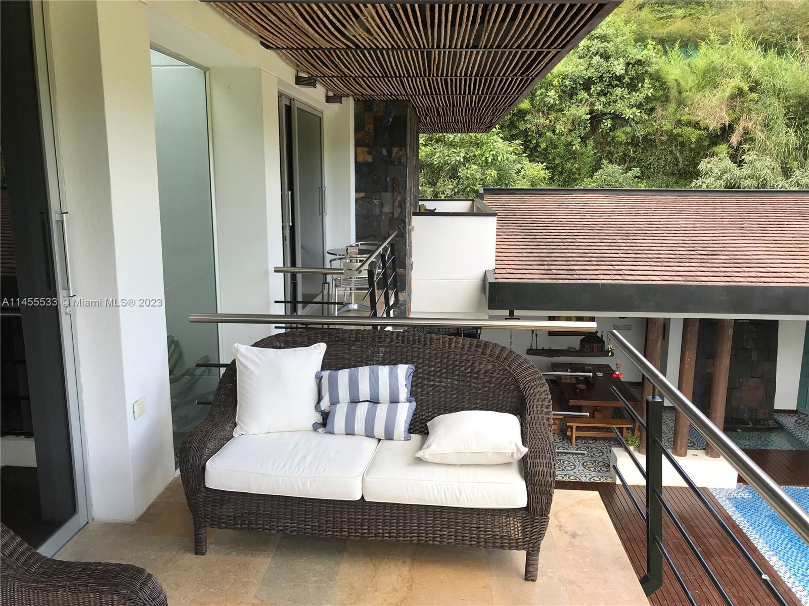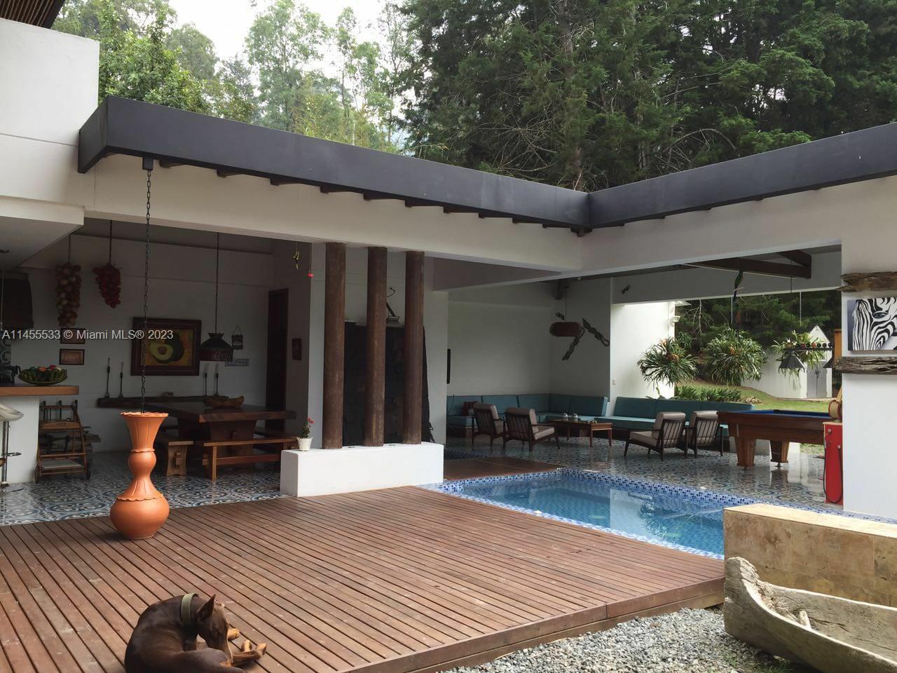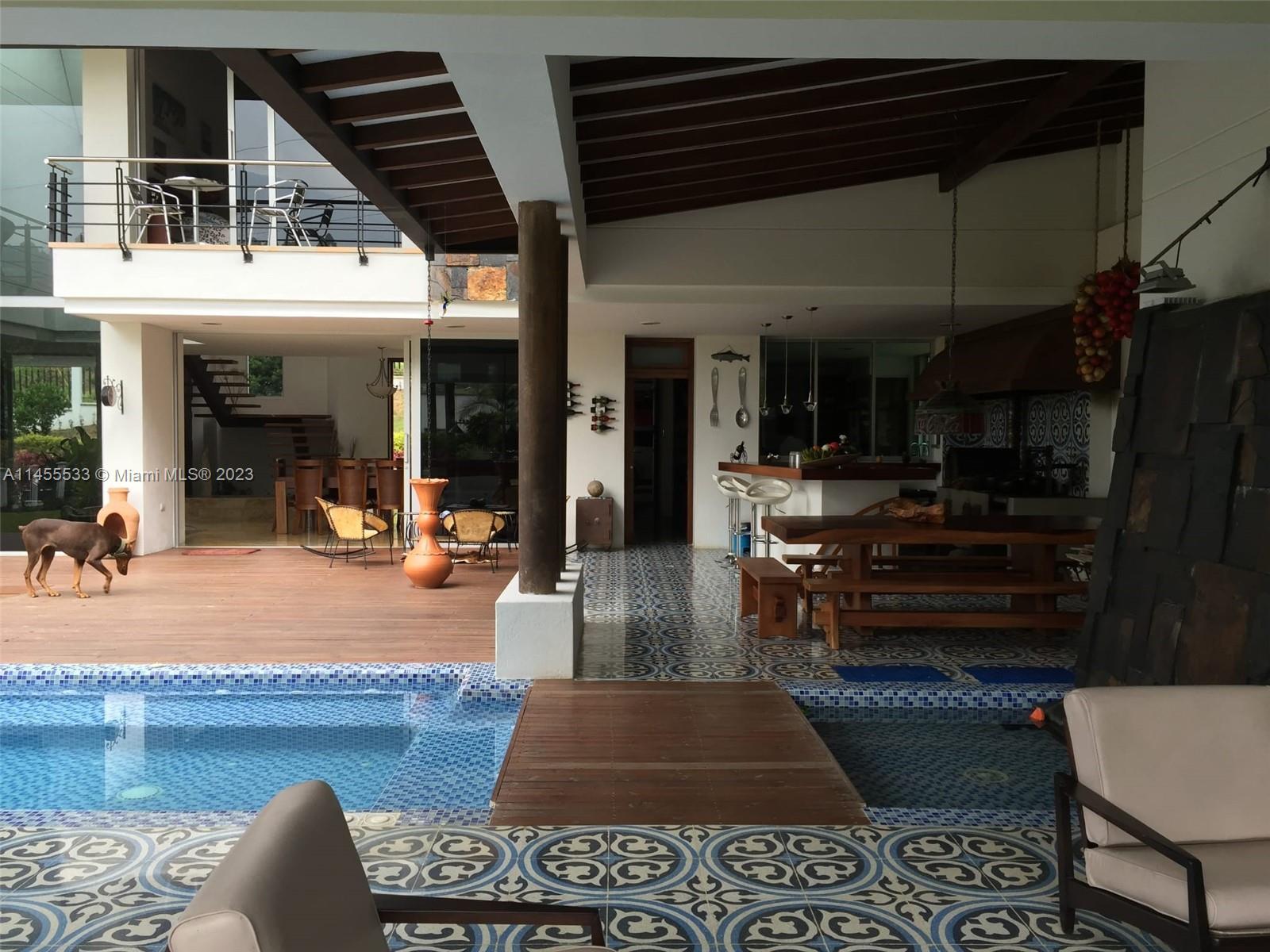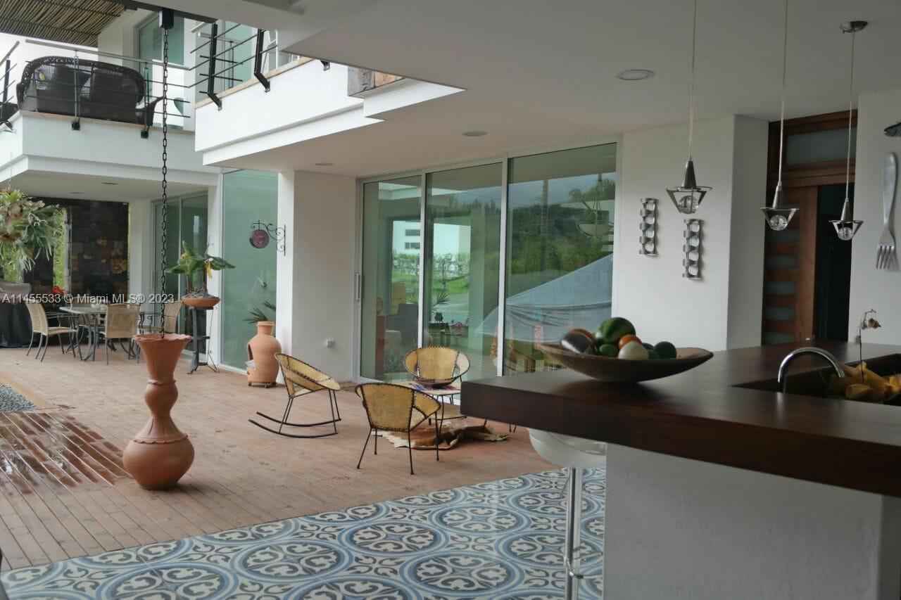 Just 7 minutes from Envigado's park, with views of the mountains, this beautiful country house has 2555 meters of land and a construction of 600m2, 2 levels, 4 bedrooms all with bathroom and dressing room, 3 of them with balcony, 2 living rooms, linen closet, full kitchen, additional kitchen with stove and wood oven as well as barbecue, jacuzzi for 20-25 people, reflecting pool, staging area and games area, wooden deck, gas fireplace, space for an elevator (elevator not included), beautiful gardens with fruit and a volleyball court, covered garage for three vehicles and open garage for 20 more, American gardening house, studio apartment with independent entrance ideal for butlers, laundry patio. in total 8 bathrooms, incredible luxury finishes.