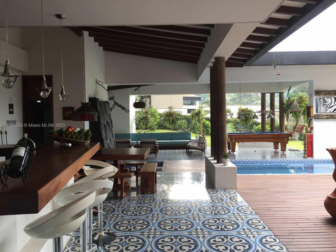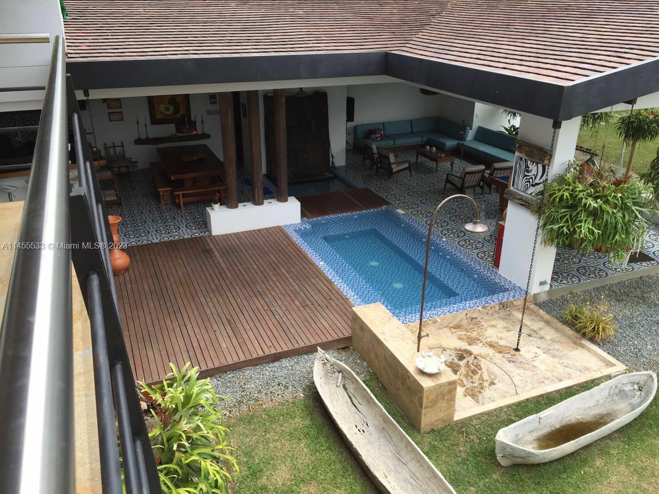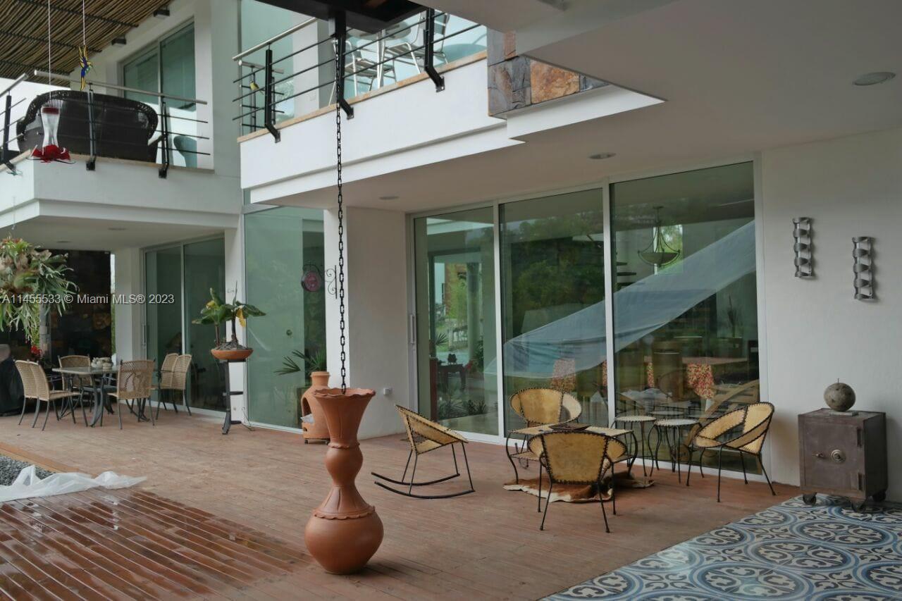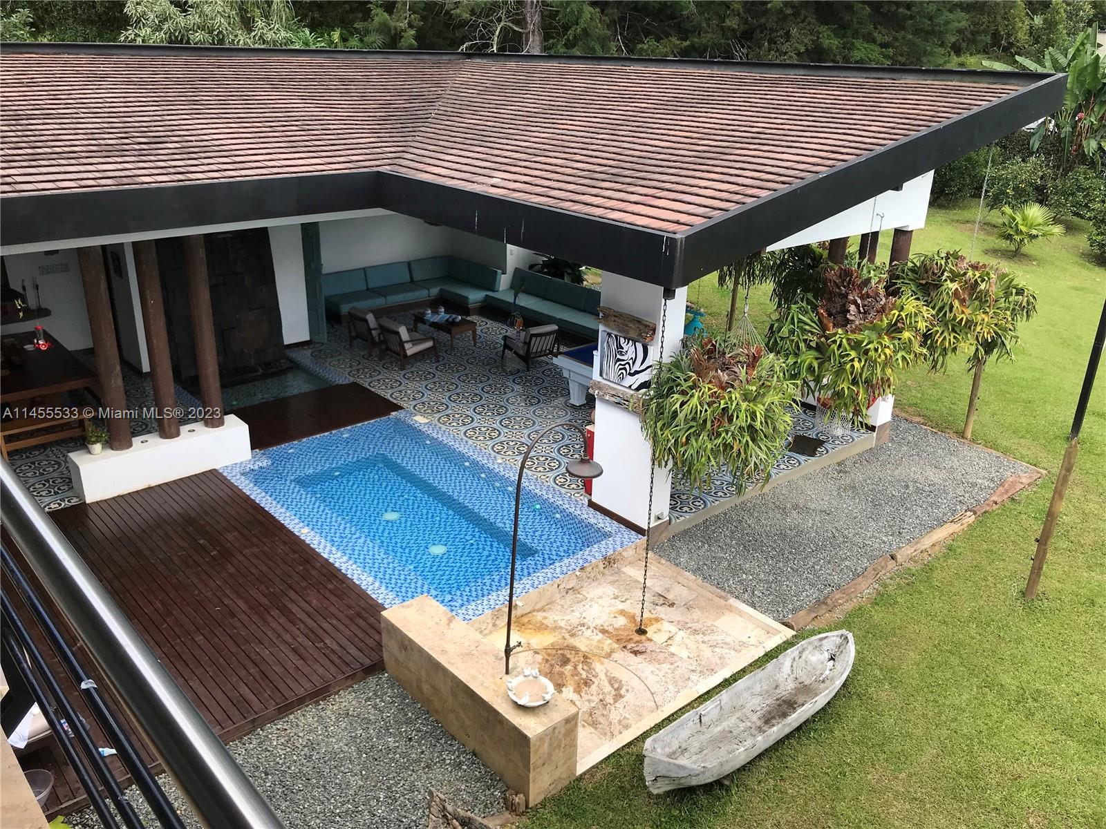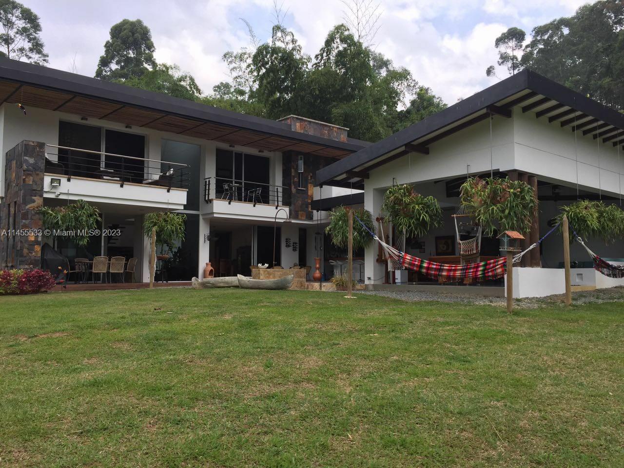 Just 7 minutes from Envigado's park, with views of the mountains, this beautiful country house has 2555 meters of land and a construction of 600m2, 2 levels, 4 bedrooms all with bathroom and dressing room, 3 of them with balcony, 2 living rooms, linen closet, full kitchen, additional kitchen with stove and wood oven as well as barbecue, jacuzzi for 20-25 people, reflecting pool, staging area and games area, wooden deck, gas fireplace, space for an elevator (elevator not included), beautiful gardens with fruit and a volleyball court, covered garage for three vehicles and open garage for 20 more, American gardening house, studio apartment with independent entrance ideal for butlers, laundry patio. in total 8 bathrooms, incredible luxury finishes.