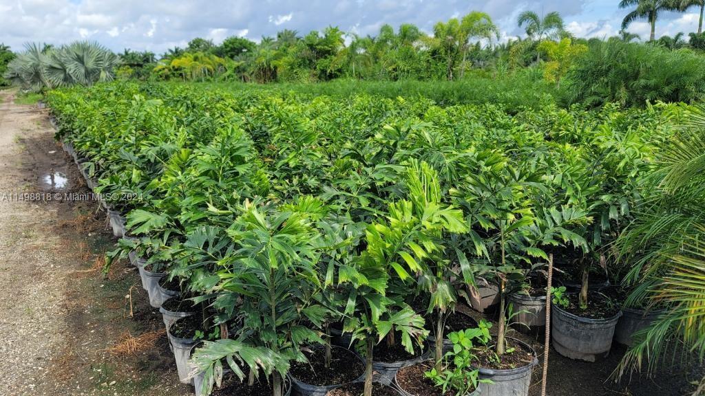 Land opportunity 20 acres at Miami, income nursery, large inventory, great location, easy access to main highways, 5.2miles to Kendall-Tamiami Executive Airport property is higher than most soil level elevation, in the last 20 years was spread 20,000 cubic yards of soil, with large irrigation pumps, and 3 big diesel engines. Also the area is under city review for rezoning to residential, land opportunity for future development, the site location is steps from Main Street,that across is residential area, with community gate residential homes, close to schools, next to Publix supermarket, Walgreens pharmacy, TD Bank, and more…