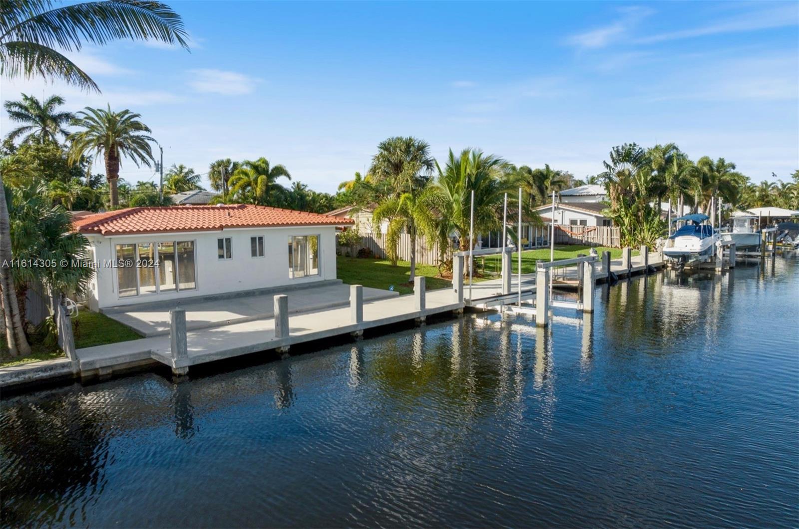 DRASTIC PRICE REDUCTION 3 bed 3 bath home on MIDDLE RIVER MANOR was just remolded, turn key home on the canal with 2 fixed bridges to the ocean. Owner updated sea wall to meet new code and added boat lift to concrete dock. Boat lift has a 10k pound max payload and can accommodate a boat up to 24 ft. Tile Roof replaced in 23, NEW AC in Sept '19, water heater replaced in 2023 exterior walls insulated and attic space has blown in insulation in 2023. AC wall unit in the master installed 2023 is addition to central air. Independent but attached 3rd bedroom and 3rd bathroom can be used as a studio apt, mother in law suite, or perfect Airbnb. Owner replaced all plumbing and electrical in 2023. NO HOA/ Deed Restriction.