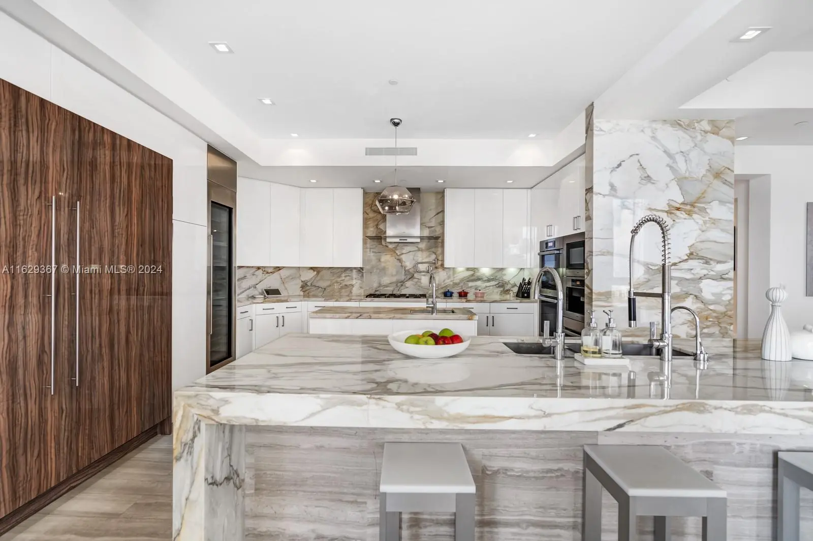 This gorgeous modern unit is located at The Mansions at Acqualina renowned as the worlds finest residences! This exquisite building offers unparalleled elegance and sophistication. The unit is 4609 ft.² of living space with 6 and a half bathrooms; 3 bedrooms, living room and a family room. This stunning unit features three spacious bedrooms but can easily convert to four. It’s a float through residence with three balconies and a summer kitchen. The gourmet kitchen has top-of-the-line appliances; 2 stoves, 2 dishwashers, a wine cooler and much more! Exclusive amenities include a Rolls-Royce house car, daily breakfast, hammam, private pool with cabanas, a cigar room, golf simulator, movie theater, fitness center and so much more!