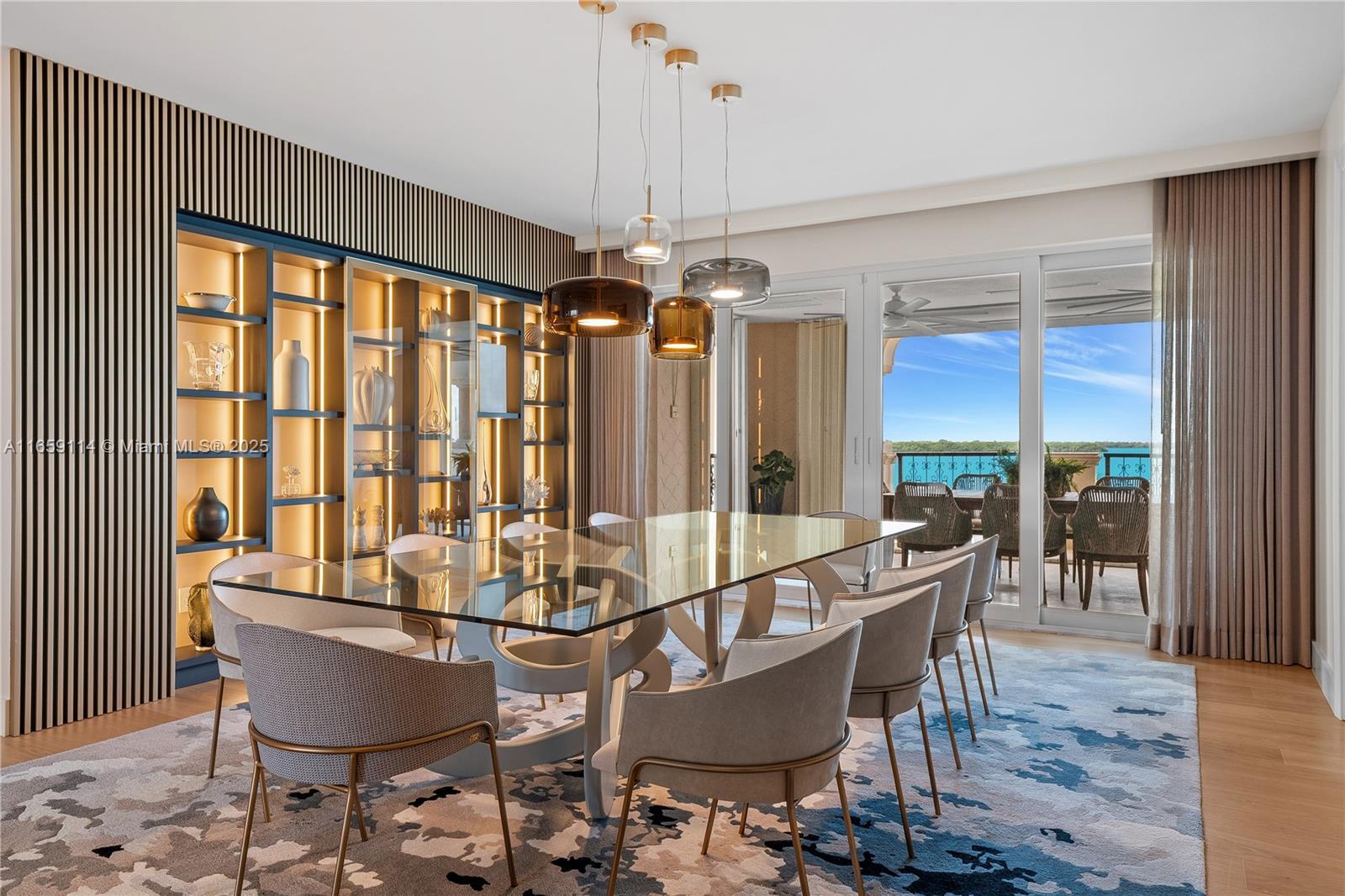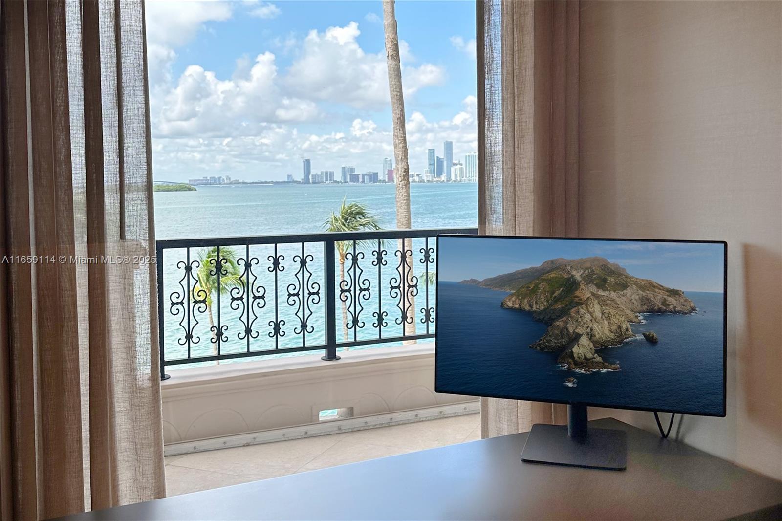THE EPITOME OF LUXE LIVING WITH BREATHTAKING MIAMI SKYLINE & OPEN BAY VIEWS THIS FISHER ISLAND RESIDENCE IS CURATED BY RENOWNED DESIGNER CARLA CANEPA! Turn-Key Home where every detail has been Crafted to Perfection w/Sierra Italian furnishings. Spacious 5-Bedrooms + Office, 5.5-Bath offers 6,120 SF of refined interior living space. Expansive terraces w/Sunset Views. Listone Giordano Italian Light Oak Wood Floors, Chef's Kitchen w/Double Premium Wolf Appliances. Bar area w/Polished Onyx Bar & Temp Controlled Wine Room. Powder Room in Blush Onyx. Expansive Primary Bedroom Suite w/separate Walk-In Closets & Primary Bath wrapped in Exotic Book-matched Slab Stone + Soaking Tub w/Matte Gold Dornbracht fixtures. Impact Glass Doors & Lutron & Sonos. AC Storage. 2 Parking Spaces + XLGolf Cart Space