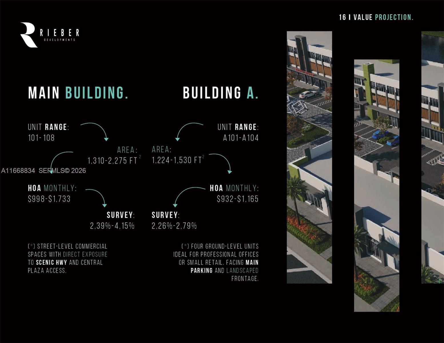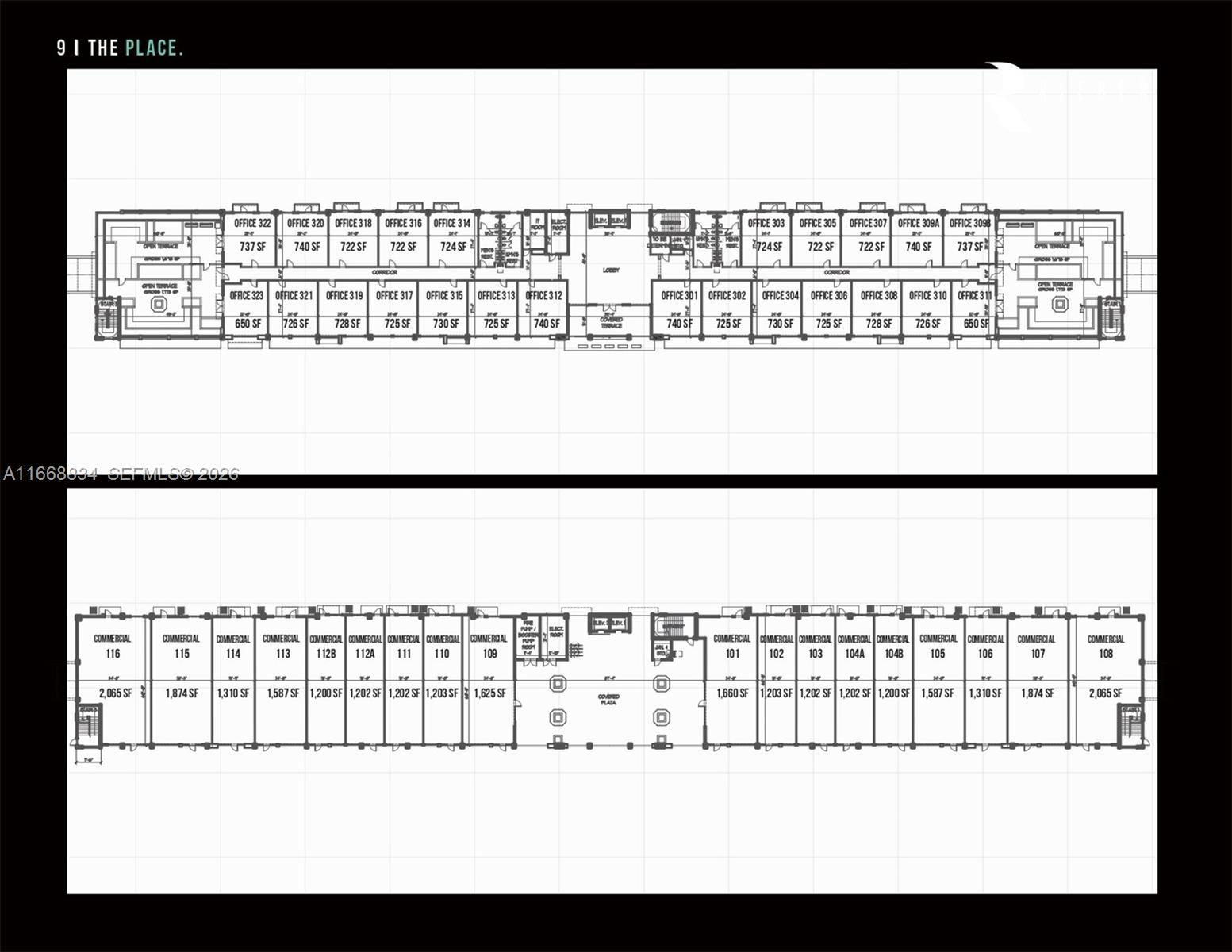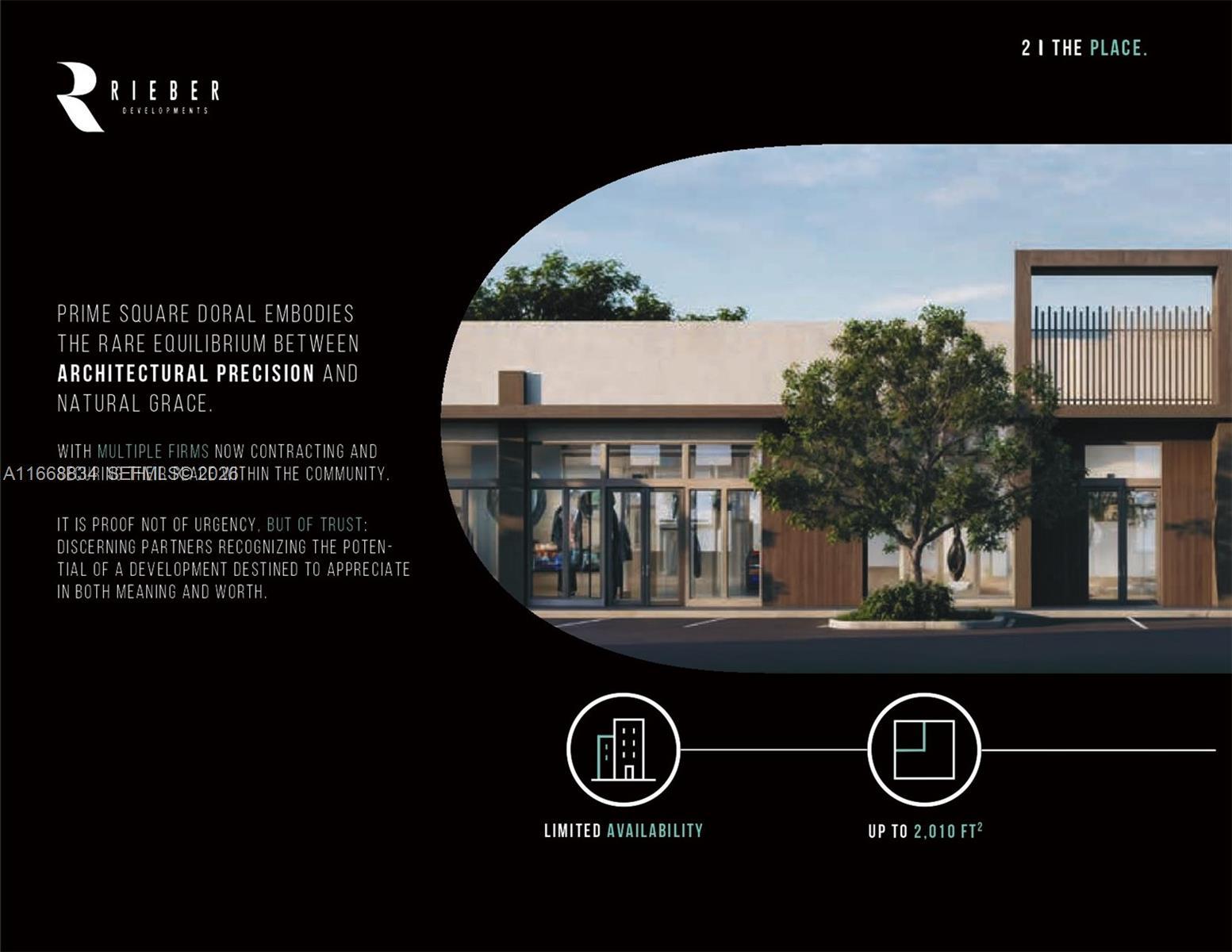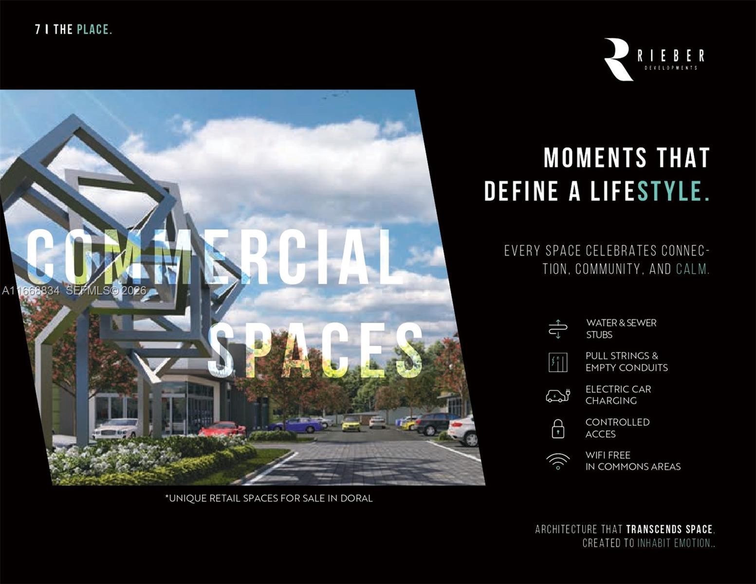 RETAIL SPACES • Retail spaces from 1202 Sq.Ft. • 1 parking spaces assigned • Unique retail spaces for sale in Doral • Floor-to-ceiling impact windows • Gas & grease trap available upon request • High ceilings • Sprinklers and fire system • Water & sewer stubs • Electrical panel disconnect with pull strings & empty conduits