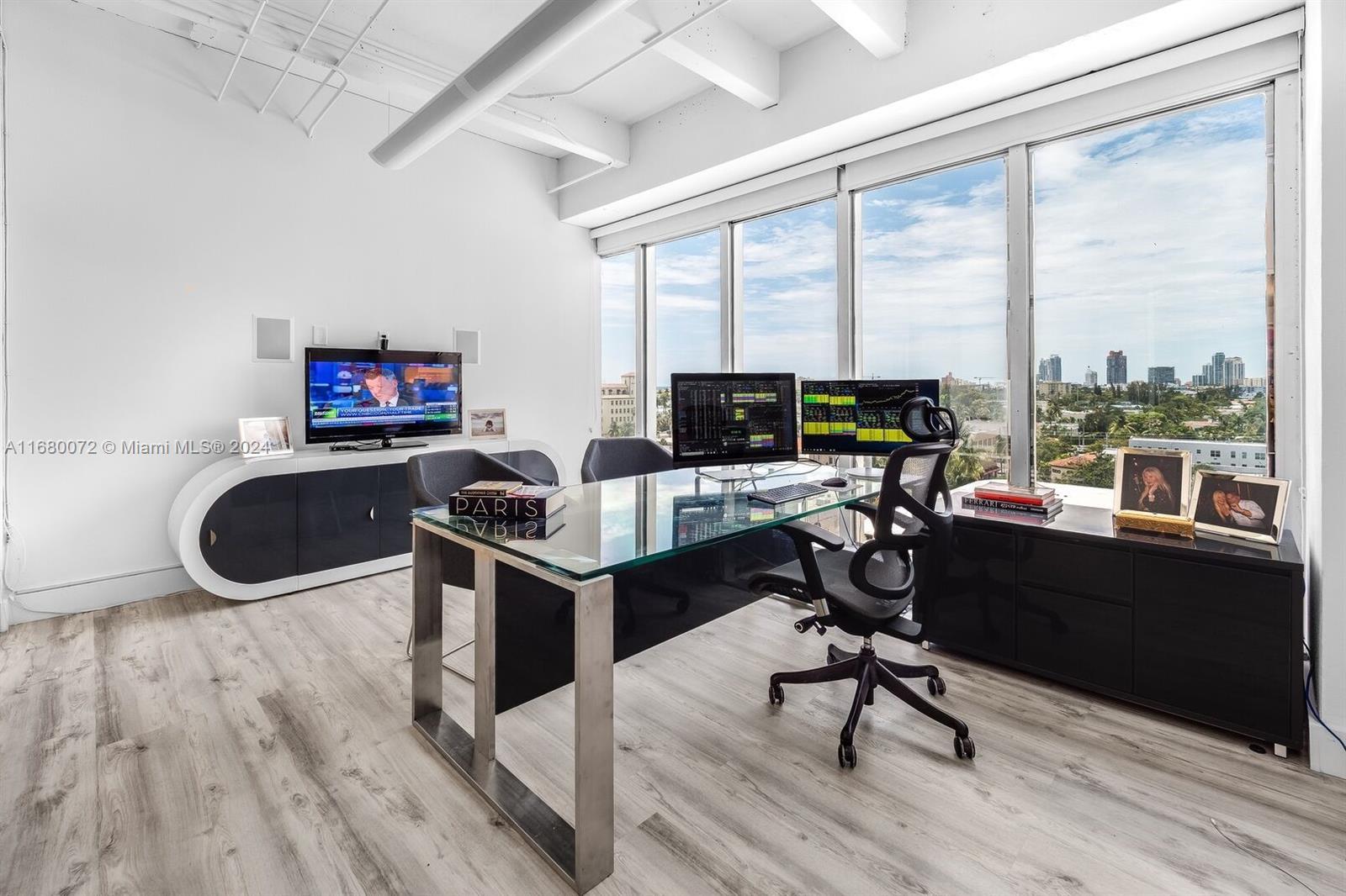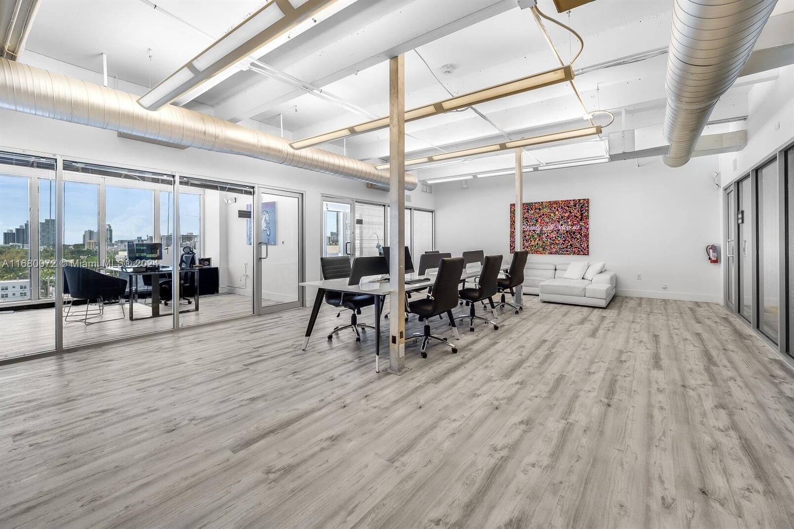 Premium office condo for sale in Class A office building off Lincoln Road in the heart of South Beach. This updated 1,911 SQFT PH is perfect for an investor or end user. Some specific medical professionals are allowed. Unit is rented to a solid corporate tenant until February 2026. This beautiful unit features an amazing layout with stunning city views and some distant ocean views. The large space is divided into 5 floor-to-ceiling glass enclosed offices, large open work space and elegant reception area. Location, Location, Location! Across the street from the Apple Store, Nike, The Gap and major retailers on Lincoln Road. 4 Assigned covered parkings included and lots of street parking around. A must see!