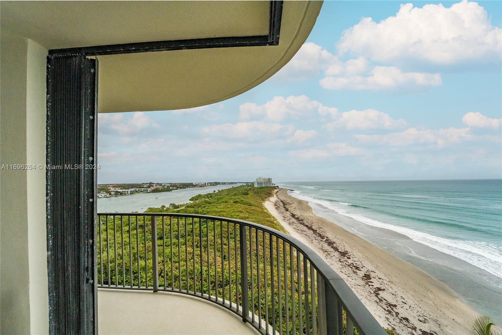 Exquisite and Hard to Find! 8th floor NE corner unit offering breathtaking views of the Blue Atlantic, Jupiter Lighthouse, & Turquoise Intracoastal waterways. This immaculate 3Br/2.5Ba unit is completely renovated with wood flooring... and a massive wrap around balcony. Building features include: a decorator lobby, and a new 2 story rec facility offering a lovely kitchen and second floor state of the art exercise facility... all overlooking one of Jupiter Islands larger pools. This DiVosta (Built Solid) product also offers garage parking and a very large A/C owner storage, meticulous grounds and spectacular on-site building manager.