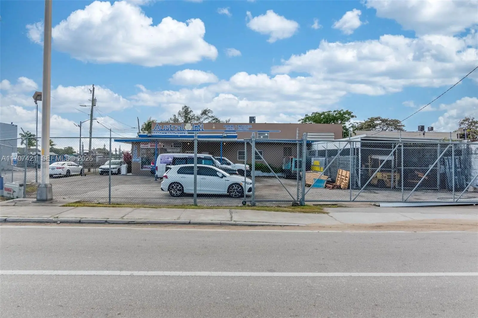 Unique corner property facing NW South River Drive in the Palmer Lake district. Approximate 5,158 square feet that includes a retail and office space and the warehouse adjacent to it (the second warehouse is available for lease separately), additional storage space and 3 bathrooms . Hard to find parking space available in front of the building, zoned for automotive/marine use , excellent location near the airport, car rental companies and one of Amazon's warehouses.