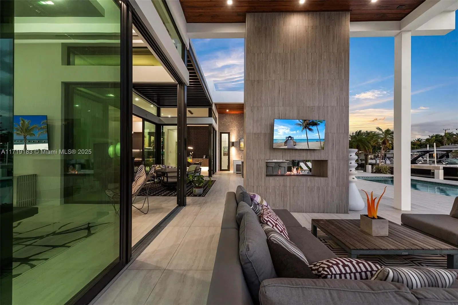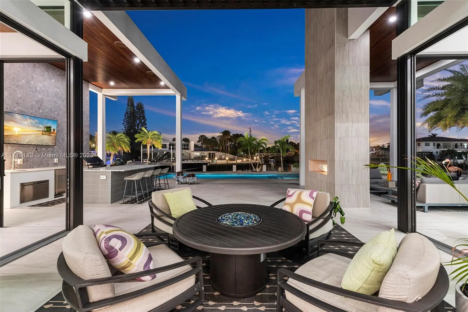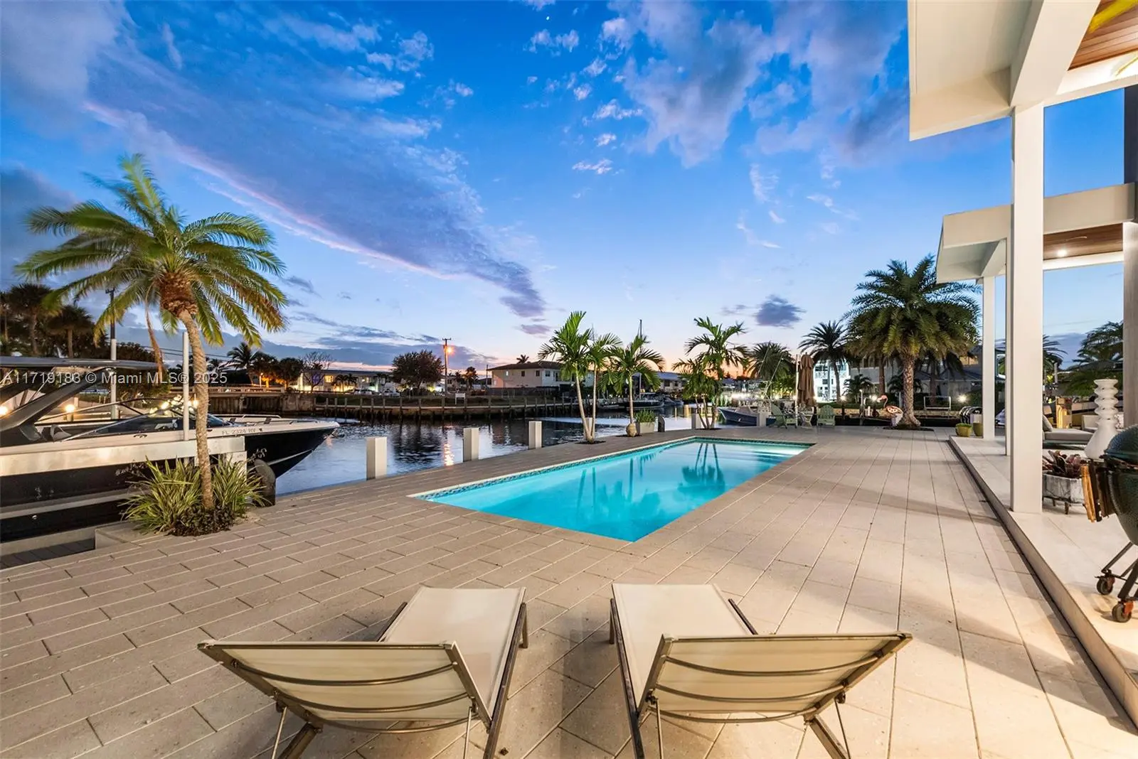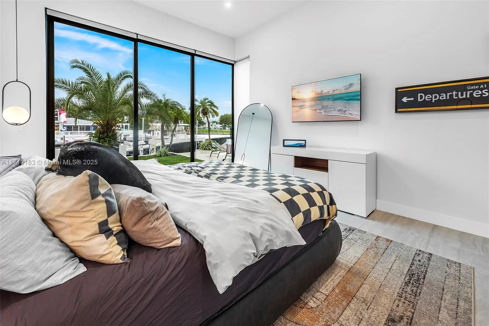 Experience the epitome of luxury in this brand-new modern ranch-style home built by renowned Zahn Builders, positioned perfectly on a coveted Southern point lot. Boasting over 200' of prime waterfrontage on the South Grand Canal, this gem is just minutes from the ocean. The home spans over 4,700 total square feet, including more than 3,000 square feet of outdoor space. Revel in the meticulous design with 3 primary-sized bedrooms, 4.5 lavish baths, a state-of-the-art gym, and an expansive 4-car garage. Outdoors, enjoy the convenience of two 25k LB lifts, perfect for your boating needs. The open-concept interior showcases no-expense-spared finishes, including mesmerizing backlit onyx countertops and select materials that exude opulence. A rare gem, this home defines sophisticated living.
