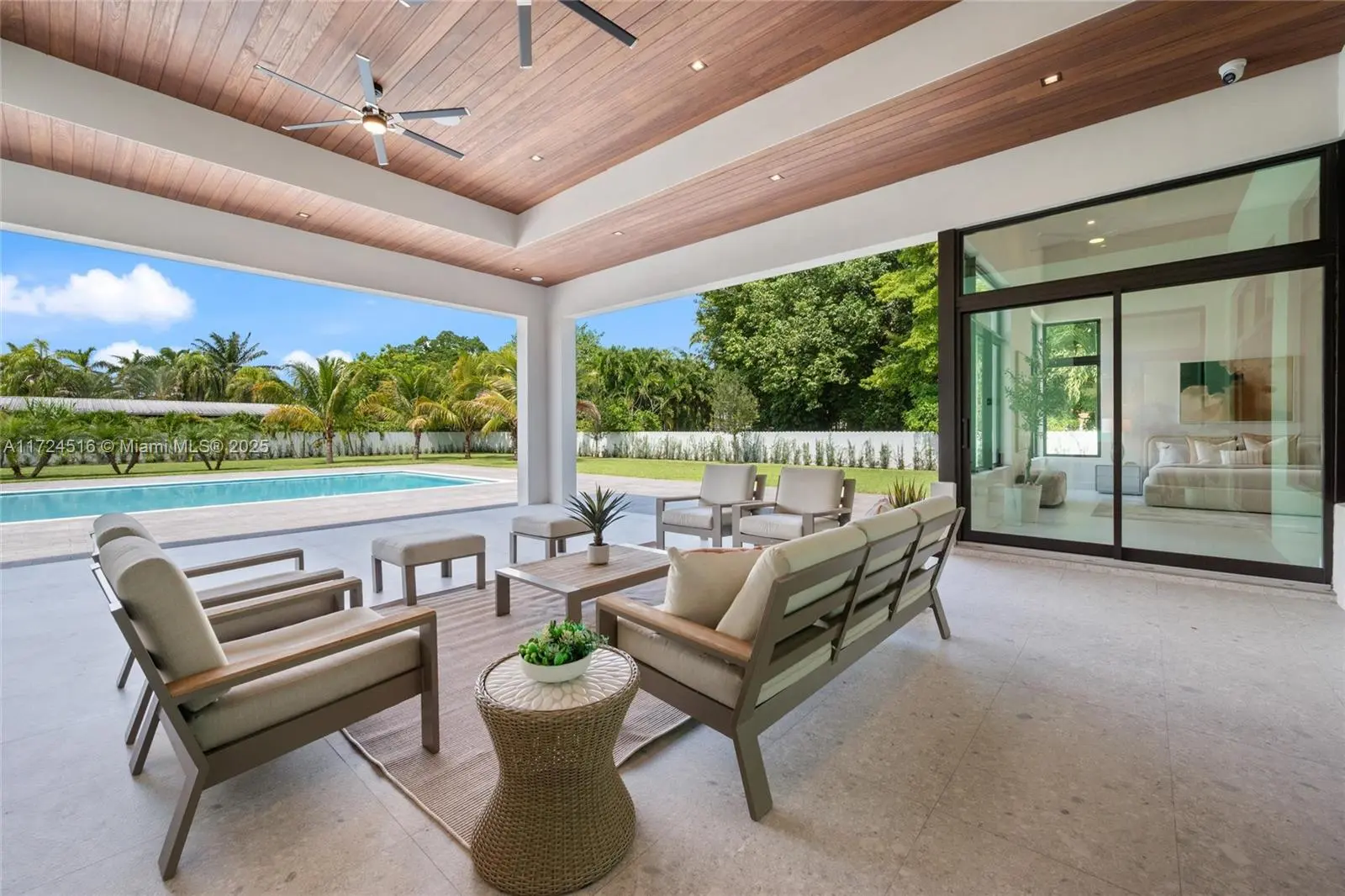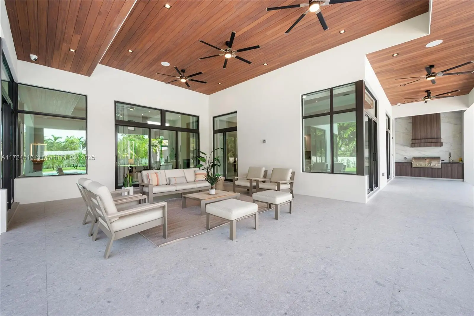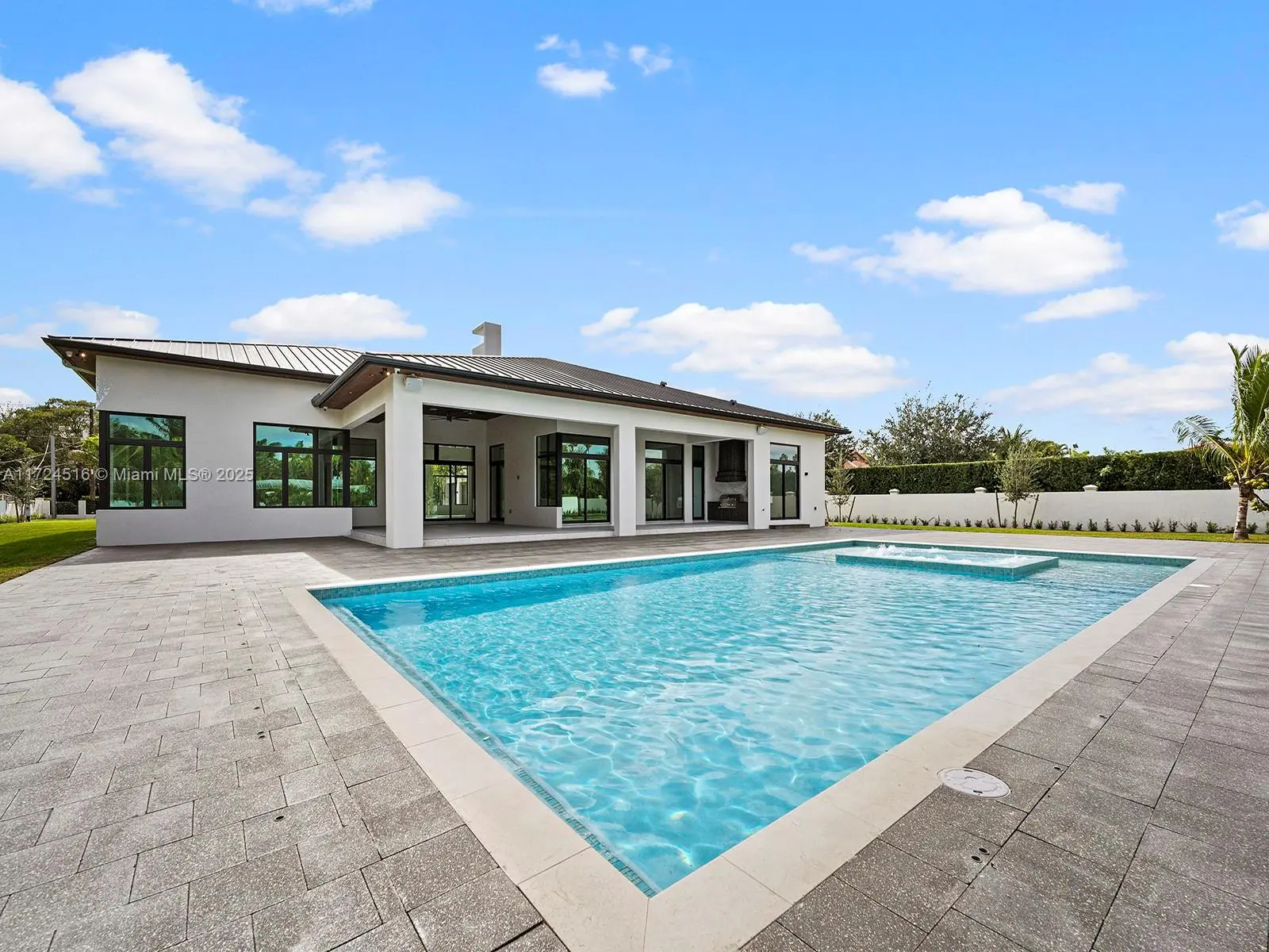 Completed in 2025, this newly built custom estate sits on over an acre, offering 7,471 sqft of refined modern living. Thoughtfully designed for today’s families, it features soaring 17-ft ceilings, fireplace, gourmet kitchen, maid’s quarters & a versatile playroom or office. The open and light-filled spaces flow effortlessly to the outdoors. Perfect for entertaining, the expansive terrace, summer kitchen, and resort-style pool with jacuzzi create a seamless setting for gatherings and relaxation. The split layout provides exceptional comfort and privacy, while the 3-car garage and large driveway offer ample space for vehicles, boats, or an RV. Built with timeless elegance and attention to detail, this home delivers the perfect balance of luxury, functionality, and serenity.