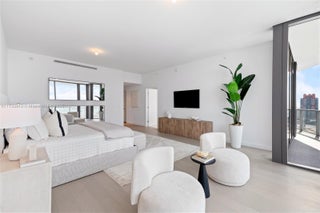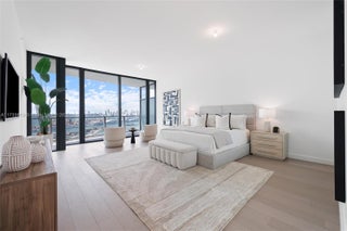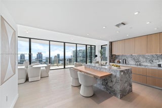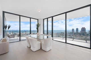 Welcome to Five Park, the epitome of luxury living in Miami Beach. Located in the prestigious South of Fifth neighborhood, this architectural gem by Arquitectonica offers 4,269 SqFt of expertly designed space. This brand- new corner unit features four bedrooms, four bathrooms, a powder room, and a private terrace, blending style and functionality seamlessly. With expansive windows, 10-foot ceilings, and a wraparound terrace, enjoy stunning ocean, bay, and city views. The Gabellini Sheppard-designed kitchen boasts Italian oak cabinetry, marble countertops, and Gaggenau appliances Residents access amenities including the exclusive Canopy Club on the 26th floor with private dining, wellness lounges, and personalized services.