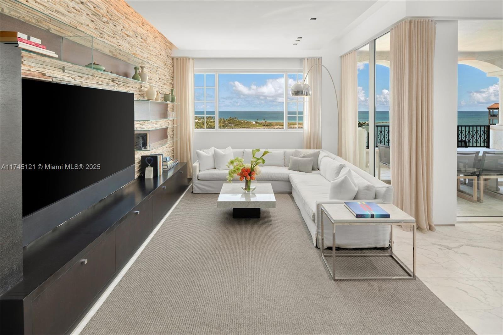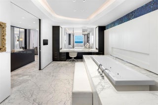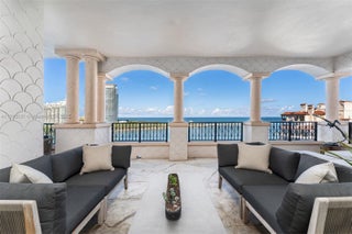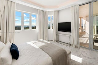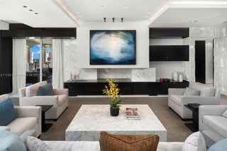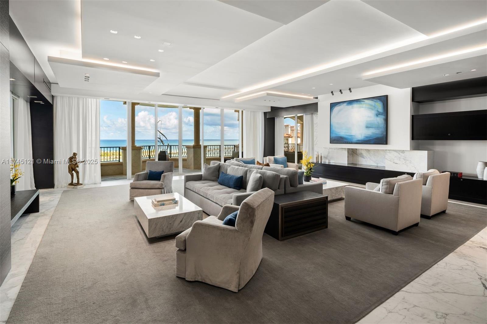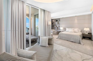 This designer penthouse at Palazzo del Mare offers unparalleled style, curated by renowned designer Lorraine Letendre. With direct views of South Beach, the ocean, and the Miami skyline, this 7,025 sq. ft. residence boasts six bedrooms, five-and-a-half bathrooms, and expansive terraces. Elegant marble flooring, 12-ft illuminated ceilings, and a modern fireplace enhance the grand living space. A gourmet Calacatta marble kitchen features Gaggenau appliances. Two oversized primary suites include walk-in wardrobes and spa-like baths. Included with purchase is a private poolside cabana, enclosed garage, golf cart parking and storage. A rare offering in Miami’s most prestigious enclave.