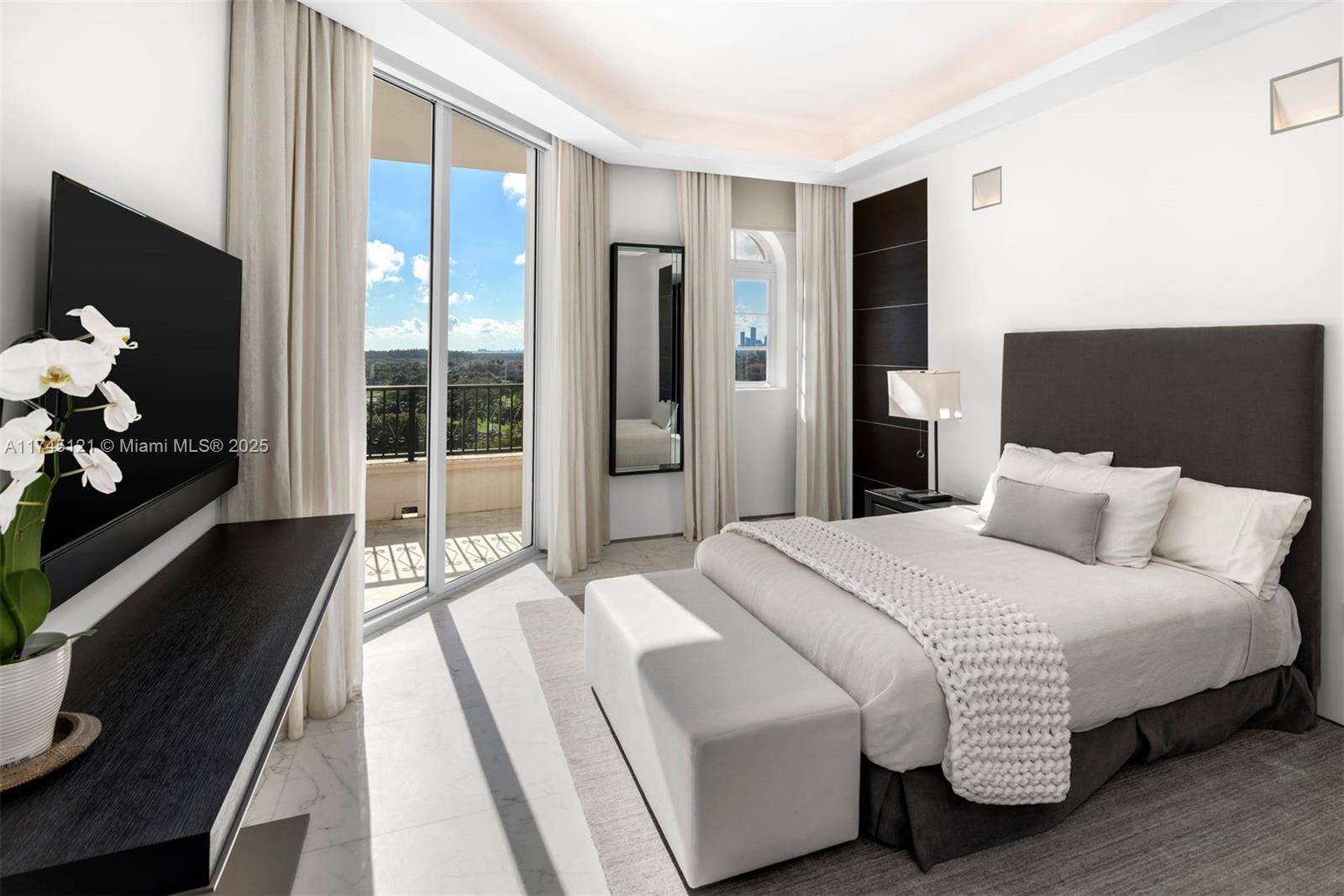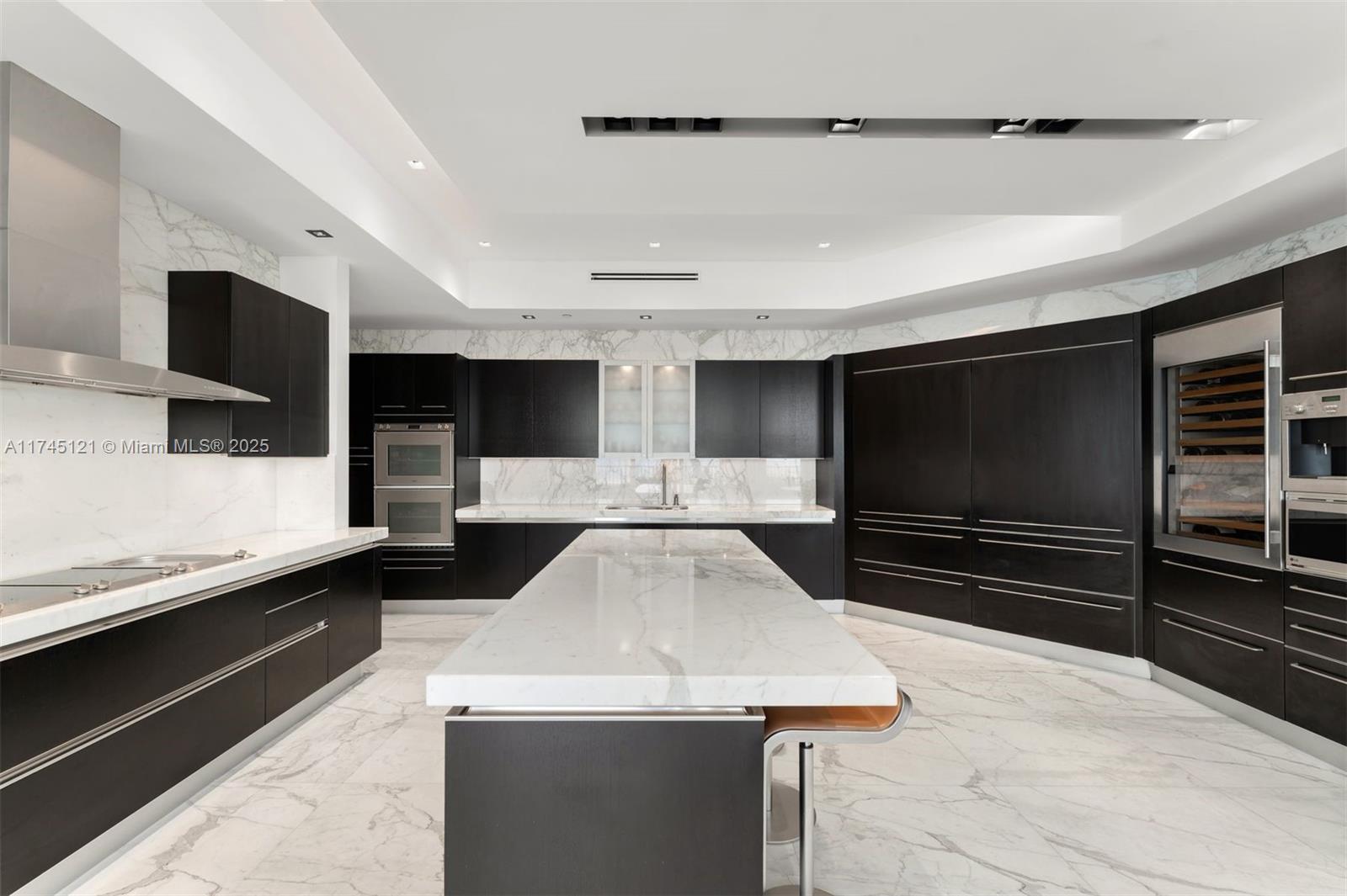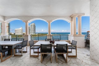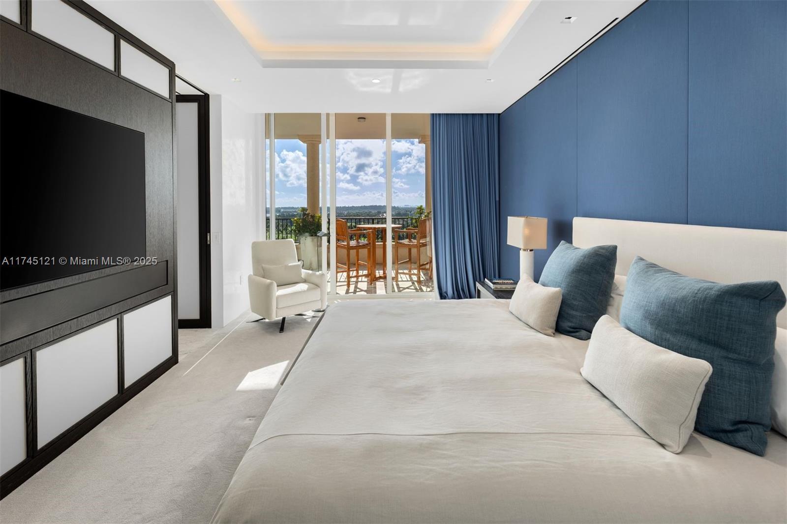 This designer penthouse at Palazzo del Mare offers unparalleled style, curated by renowned designer Lorraine Letendre. With direct views of South Beach, the ocean, and the Miami skyline, this 7,025 sq. ft. residence boasts six bedrooms, five-and-a-half bathrooms, and expansive terraces. Elegant marble flooring, 12-ft illuminated ceilings, and a modern fireplace enhance the grand living space. A gourmet Calacatta marble kitchen features Gaggenau appliances. Two oversized primary suites include walk-in wardrobes and spa-like baths. Included with purchase is a private poolside cabana, enclosed garage, golf cart parking and storage. A rare offering in Miami’s most prestigious enclave.