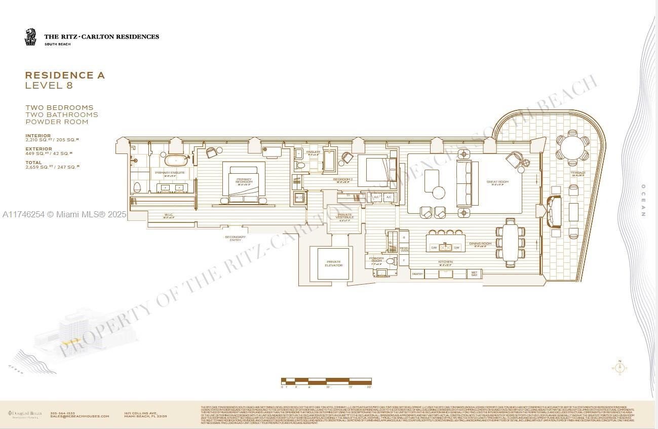 Discover the pinnacle of refined living with FULL OCEAN VIEWS at The Ritz-Carlton Residences, South Beach, an exclusive enclave of 30 oceanfront beach houses. Designed by renowned architect Kobi Karp with interiors by Studio Munge’s Alessandro Munge, this boutique property offers over 50,000 SQFT of world-class amenities. Immerse yourself in beautifully landscaped surroundings by Naturalficial and an exceptional dining curated by Michelin-starred Chef José Andrés. This grand 2-bedroom, 2.5-bathroom residence offers an impressive 2659 SQFT of living space, including a 449 SQFT terrace. It features a private elevator, a luxurious primary suite with dual dressing areas and ensuites, a study, and expansive living and dining areas meticulously designed for unparalleled comfort and style.