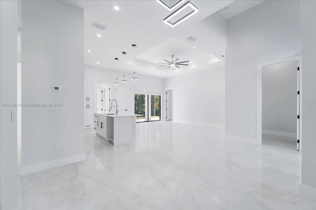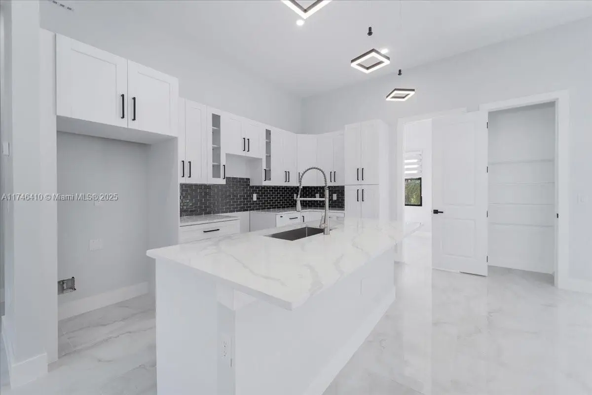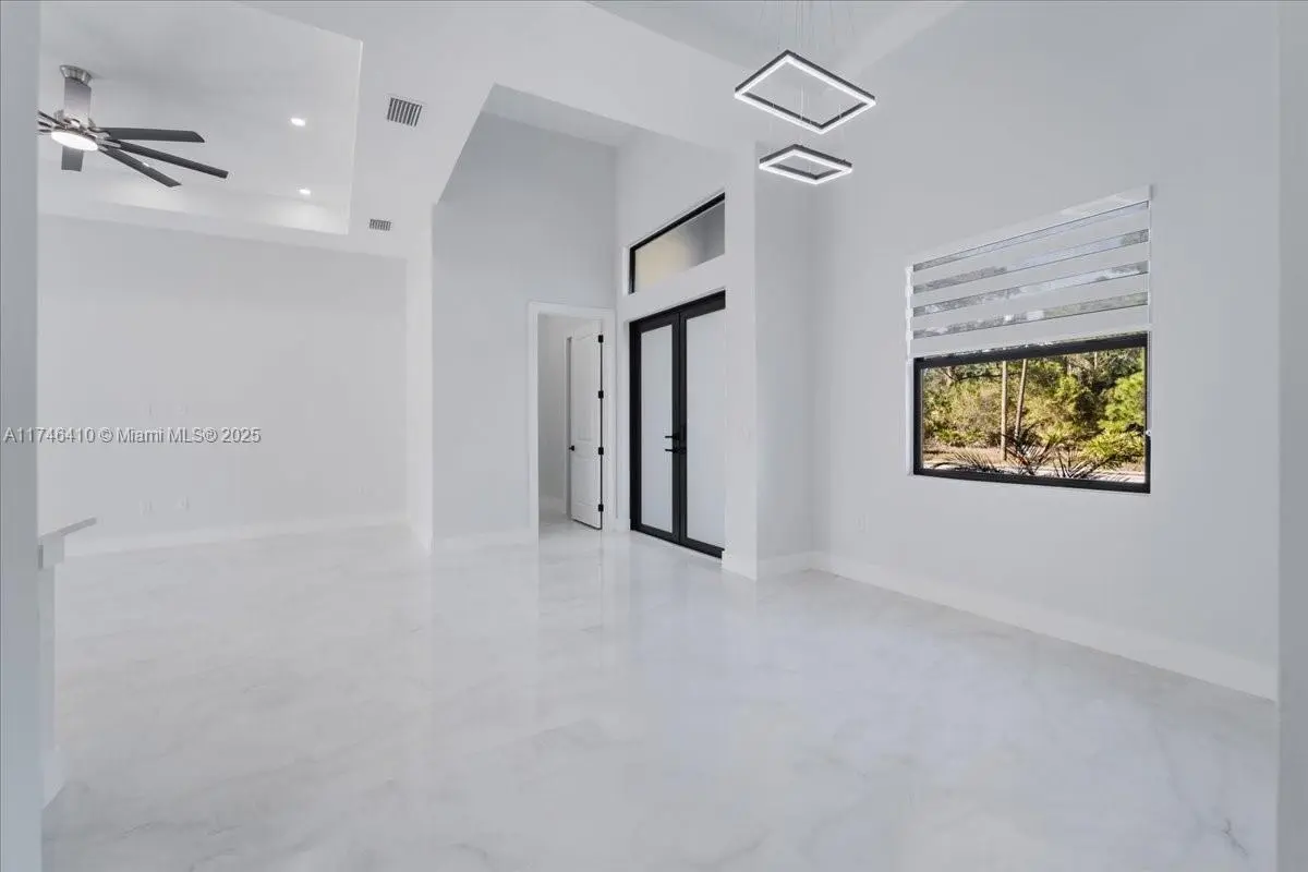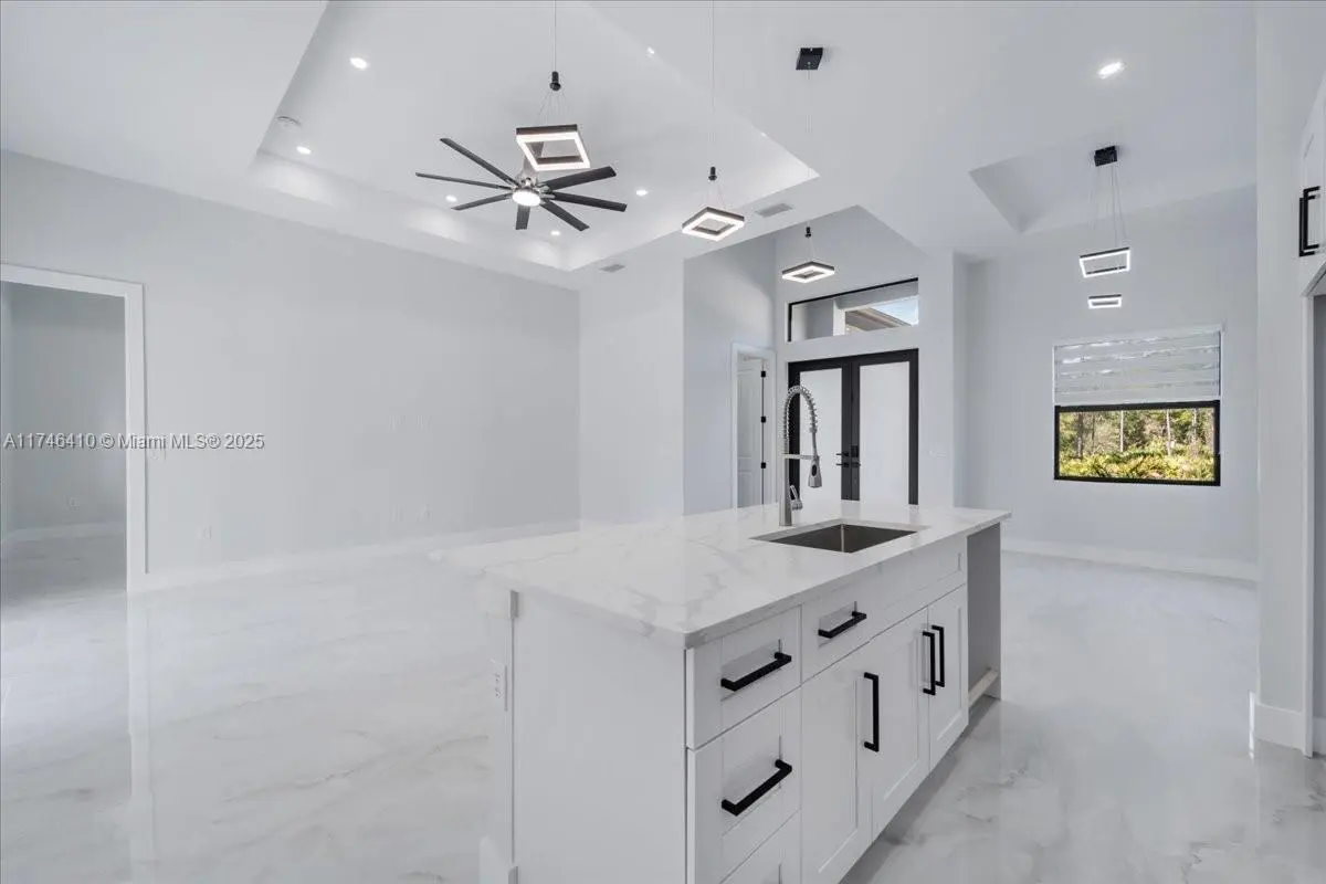 This stunning single-family home boasts 3 bedrooms, 2.5 bathrooms, and a 2-car garage, providing ample space for you and your family. The den is perfect for those who work from home or need a quiet space to focus. The chef's kitchen features quartz counters, stainless steel appliances, tiled backsplash, and a pantry for all your cooking needs. The open concept living area is perfect for entertaining guests, with tile flooring, tray ceilings, and modern fixtures throughout. The large primary bedroom is a retreat, with 2 walk-in closets and an en-suite bathroom featuring dual vanities. Impact windows and doors provide security and energy efficiency, while LED lighting and modern window blinds add a touch of elegance. The paver driveway adds curb appeal. Call now to schedule an appointment.