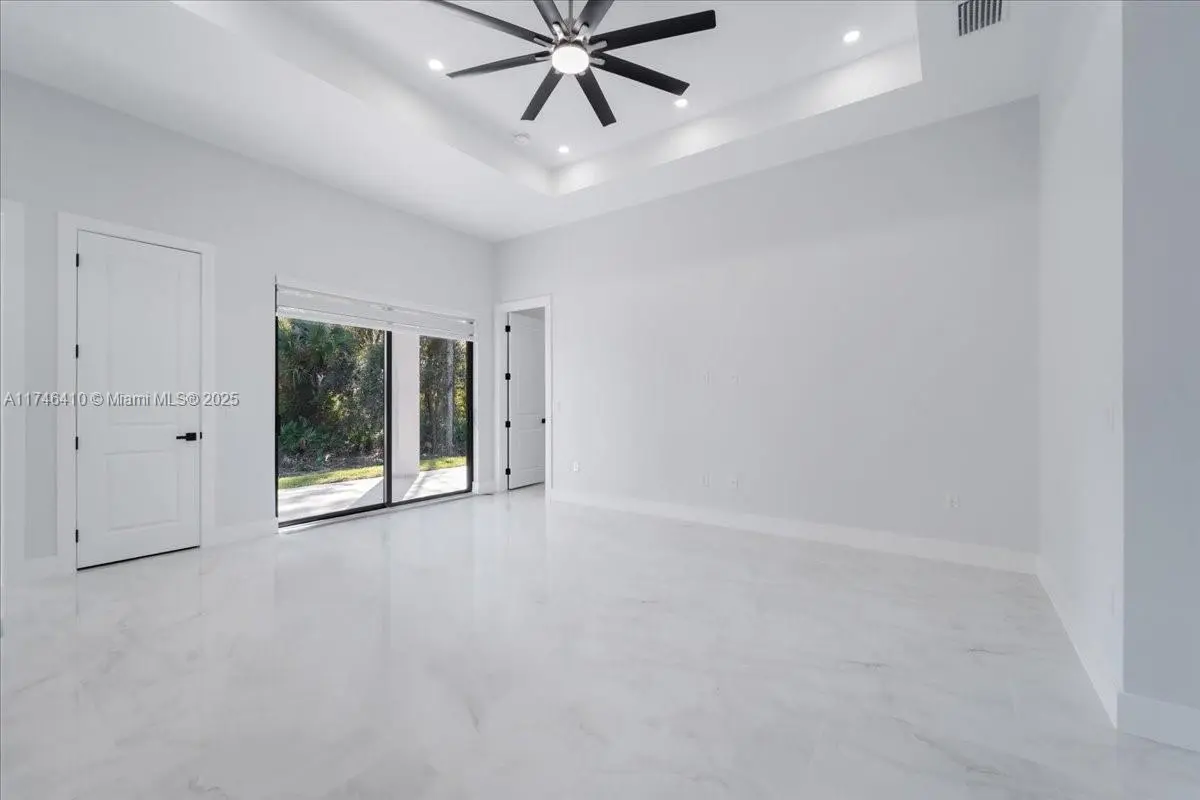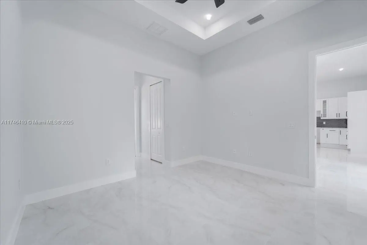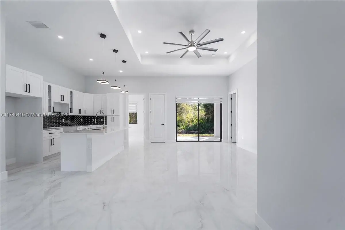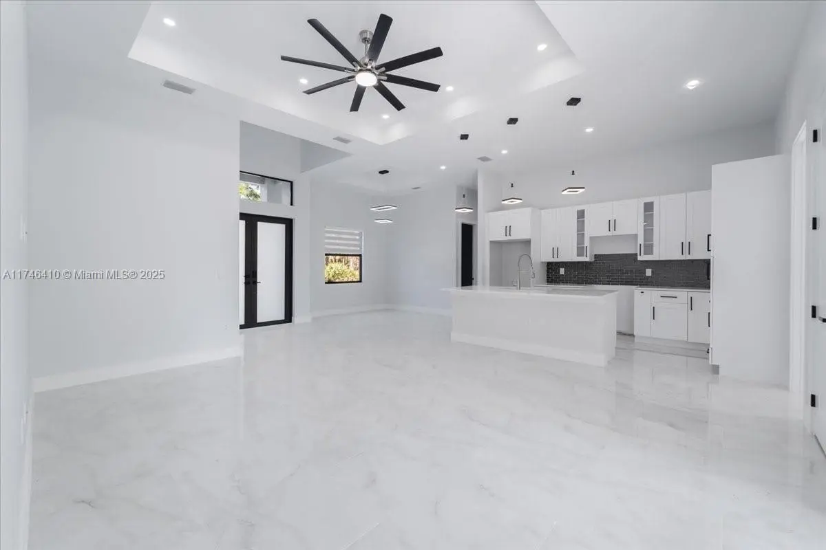 This stunning single-family home boasts 3 bedrooms, 2.5 bathrooms, and a 2-car garage, providing ample space for you and your family. The den is perfect for those who work from home or need a quiet space to focus. The chef's kitchen features quartz counters, stainless steel appliances, tiled backsplash, and a pantry for all your cooking needs. The open concept living area is perfect for entertaining guests, with tile flooring, tray ceilings, and modern fixtures throughout. The large primary bedroom is a retreat, with 2 walk-in closets and an en-suite bathroom featuring dual vanities. Impact windows and doors provide security and energy efficiency, while LED lighting and modern window blinds add a touch of elegance. The paver driveway adds curb appeal. Call now to schedule an appointment.