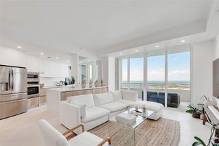 This exceptional waterfront residence, located on one of the Pre-Penthouse floors, offers breath-taking water and skyline views that greet you the moment you open the door. With 10-foot high ceilings, the space feels incredibly open and airy, amplifying the grandeur of the vistas beyond. The interior features stunning neutral marble flooring, which adds a touch of timeless elegance to the modern design. The open chef-style kitchen has been fully renovated. Every day feels like a vacation in this luxurious home, where you can enjoy resort-style living from the privacy of your own space. Whether you're admiring the panoramic views or relaxing in the sophisticated, spacious surroundings. Second bedroom is a den.