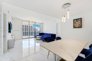 Enjoy jaw dropping open bay and city views from the 49th floor at Aria on the Bay. This spacious and upgraded 2 Bedroom + 3 Baths residence in central Edgewater location spans 1,229 SF Interior + Terrace. Boasting 9-foot ceilings with floor-to-ceiling windows, impeccably maintained porcelain flooring throughout, white quartz countertops, Italian wood cabinets, and stainless steel kitchen appliances by Bosch. Aria on the Bay offers an array of amenities, including pools, hot tub overlooking Biscayne Bay, movie theater, fitness center and yoga studio, spa and massage treatment area, BBQ area with summer kitchen, kids’ playroom, business center with conference room and offices, and much more. Live just 10 minutes from South Beach and 12 minutes from Brickell. Furniture included in the sale.