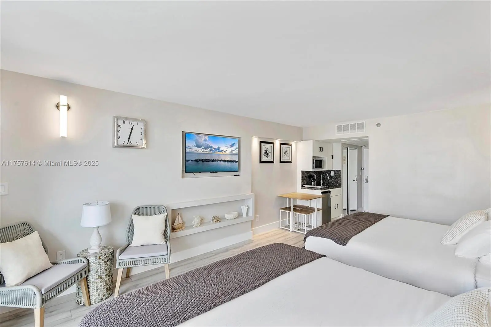 Excellent, COMPLETELY renovated oceanfront studio with two queen beds and balcony, a fully equipped kitchen, and top-quality appliances. Enjoy resort-style living with a pool, gym, beach access, and more. The rent includes electricity, Wi-Fi, cable, valet parking, water, trash removal, and all amenities. Newly painted with a new impact balcony overlooking Sunny Isles. Walking distance to restaurants and shopping, just 5 minutes to Aventura Mall. Ideally located between Miami and Fort Lauderdale airports. Annual lease at $2,250/month. Short-term rentals available with 13% taxes. Easy to show!