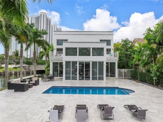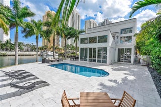 The perfect modern style waterfront pool home just steps to the beach . Situated on point lot with 135' waterfront and dock space that will accomodate up to 100' yatch . Features include high ceilings , large master bedroom with 2 balconies overlooking the ocean and intercoastal . This unique property is exclusive Atlantic Isles , on all waterfront private community home with no thru traffic . Approx 3500 sq ft 4 bed 3 bath completely renovated modern style furnished and easy to use .