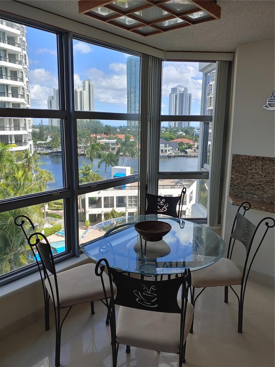 Large 2 bedroom/2 bath plus den, bay and lake/garden views, porcelain floor throughout, granite counter tops, built in office w/ murphy bed and lots of storage, full size washer and dryer, pool, jacuzzi tub, marina, restaurant, updated gym, basketball, tennis, pickleball, close to Aventura Mall, Gulfstream, and the Beach. Internet + Cable Included. All furniture can be removed as needed other than the built-in office with murphy bed. Available for 6 or 12 month rental.
