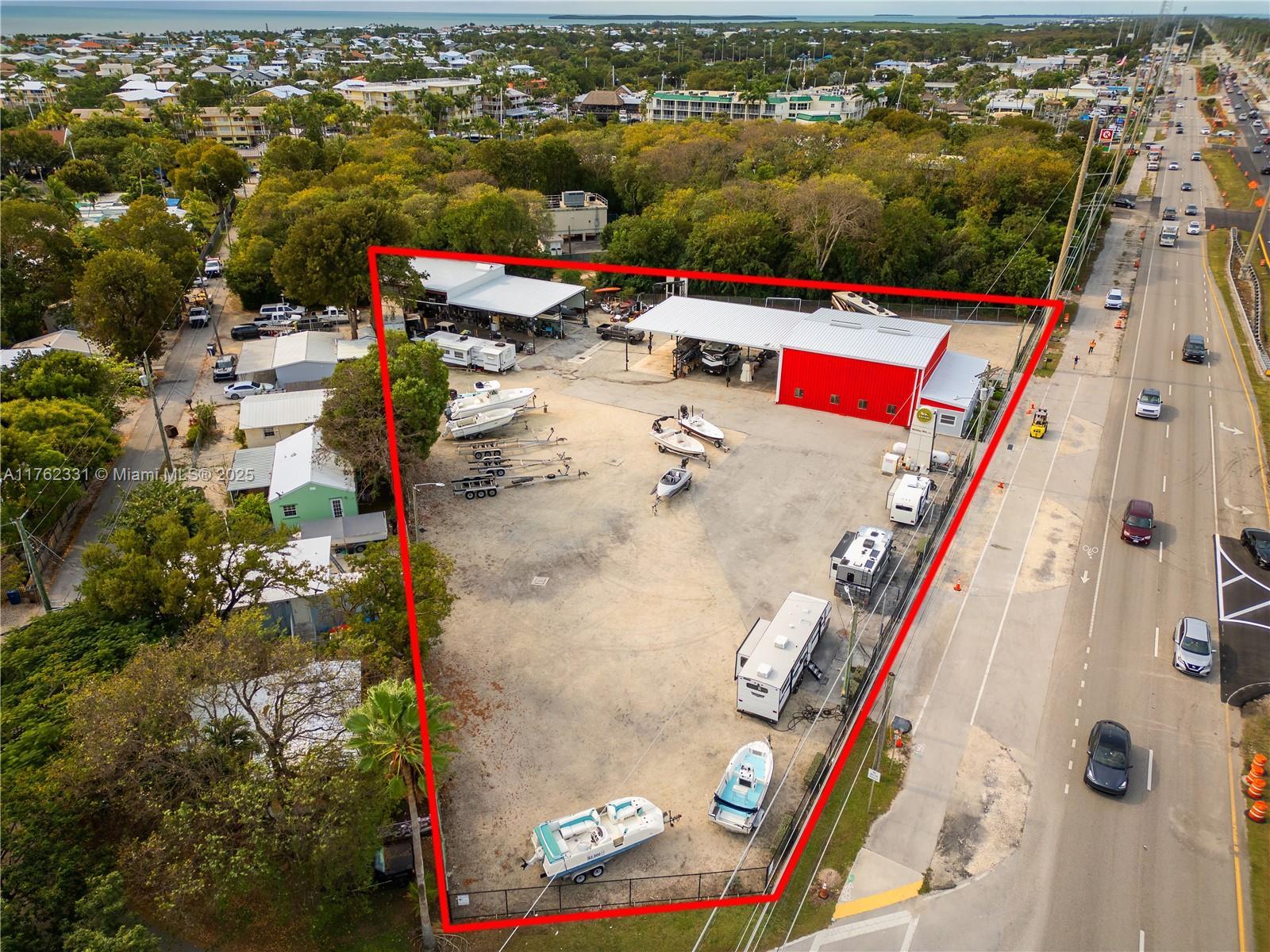 Prime Commercial Property in Key Largo, Just 1 Hour from Miami! This 1.2 acre corner lot with 321 ft of US1 frontage offers unmatched visibility in downtown Key Largo. Fully fenced with 3 new gates (20ft,24ft,40ft), it features a renovated 4,680 sq ft two story building used for RV sales & services. Interior highlights include tile floors, custom desks, ample storage and 2 half baths. Additional features: large paint booth, RV/car lift. Ideal for business expansion or new ventures. High traffic, high potential. Owner open to long term lease.