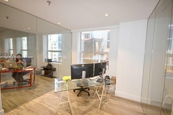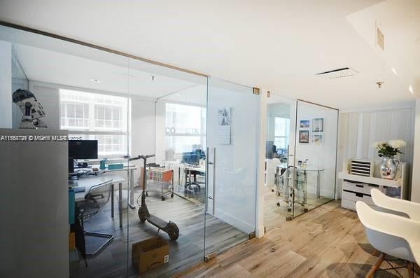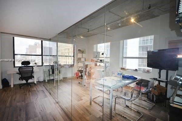 Great opportunity to own in the center of Downtown Miami, in the Huntington Building. Two separate offices under one folio - 2 separate offices one across from the other (you can rent to 2 separate businesses). First office space hosts 6 private offices with 2 reception areas and a kitchen area (Presently rented with an annual income of $35,880). Second office space has 3 private offices, a conference area, and reception area. There are one 3 offices in total on this floor and you will own 2 of them. Electricity is paid by building. Walking distance to wholefoods, restaurants and Brickell. Must see!!