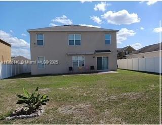 Spacious two-story single-family home featuring 5 bedrooms and 3 bathrooms, with one bedroom and one full bathroom conveniently located downstairs. The open floor plan includes a den, perfect for a home office, and a fully equipped kitchen with an island. Generous walk-in closets provide ample storage. Enjoy a large, gated private backyard with plenty of space for a terrace and pool. The property also offers a double garage and a two-car driveway. Conveniently located just 5 miles from Legoland, 20 miles from the airport, and 18 miles from I-4. Don't miss this opportunity!
