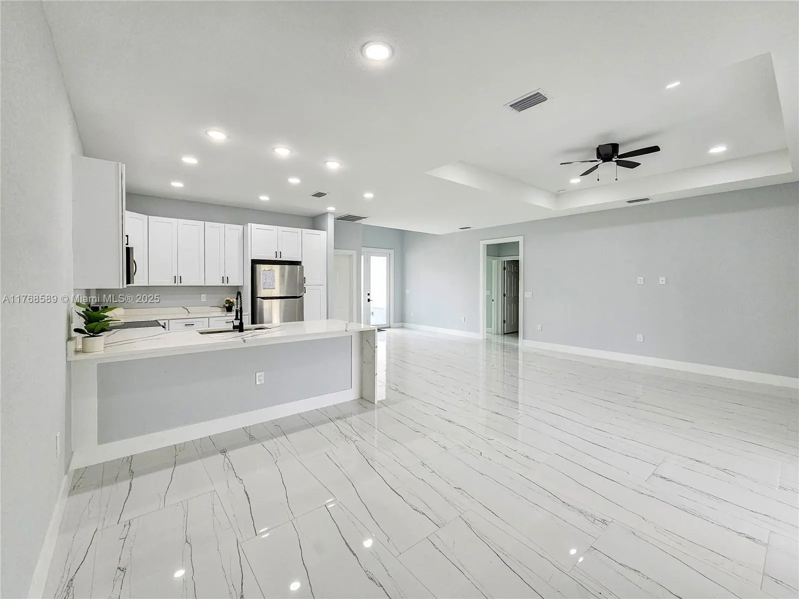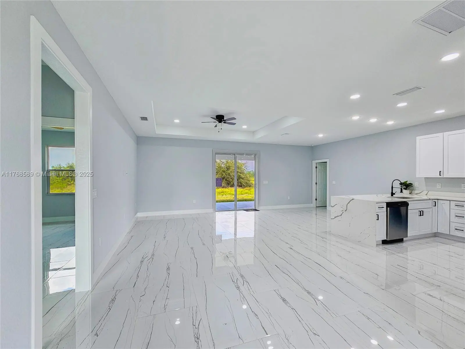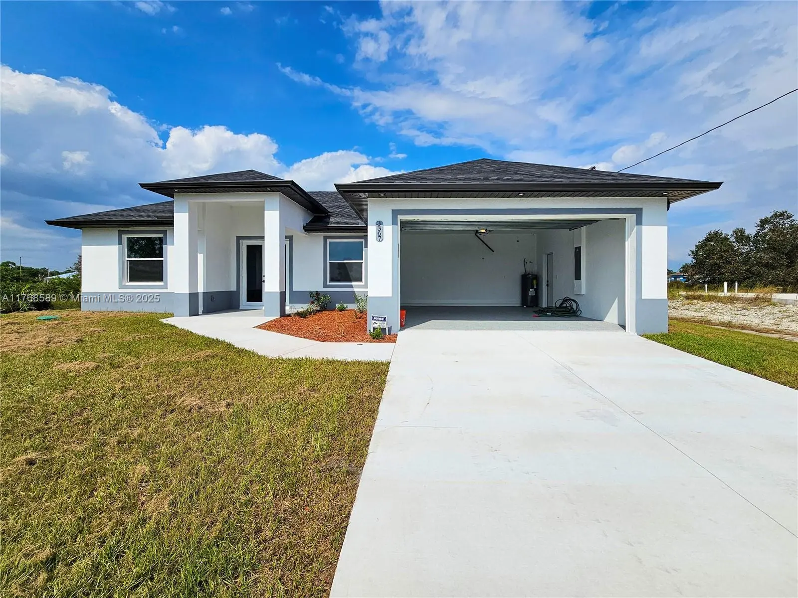 NEW CONSTRUCTIONREADY TO MOVE IN. - Seller Contribution Toward buyer $8,000.Excellent location, close to the main Road SR82,fast access to airport, Schools, shopping centers. Modern Open Concept layout, extraordinary distribution of spaces with 3 bedrooms, and 2 bathrooms, and 2 Car Garage. Excellent ceiling height which makes it very clear and bright. Tile floors throughout the entire house. Kitchen Quartz Countertop, soft close shaker cabinets, Stainless Steel appliances. Impact doors & windows. Indoor laundry room, Porch is covered by roof, a beautiful and spacious patio. Builder 1 year warranty