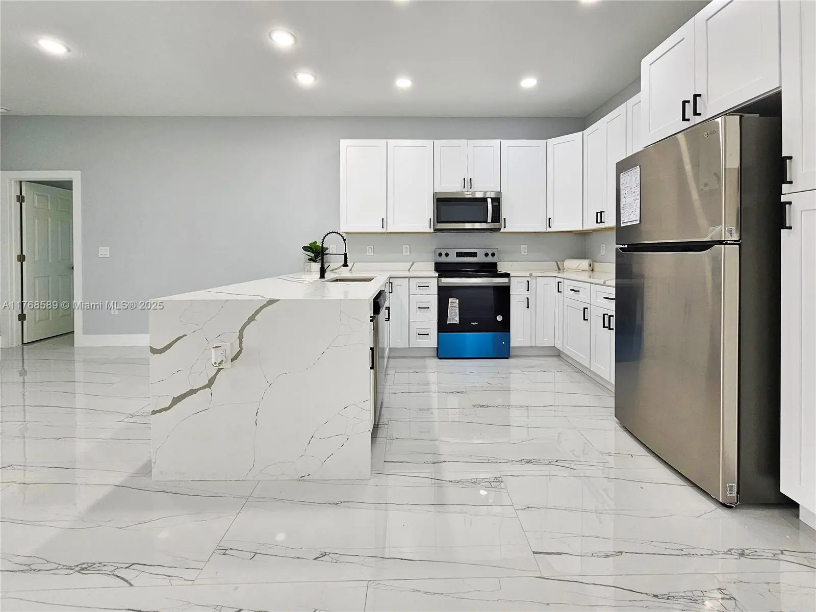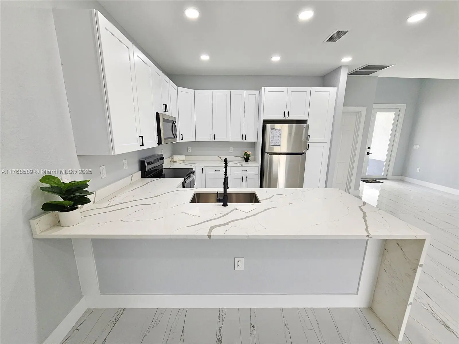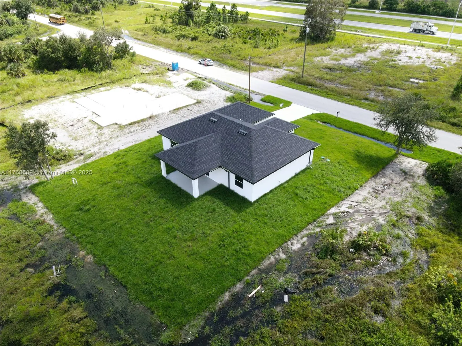 NEW CONSTRUCTIONREADY TO MOVE IN. - Seller Contribution Toward buyer $8,000.Excellent location, close to the main Road SR82,fast access to airport, Schools, shopping centers. Modern Open Concept layout, extraordinary distribution of spaces with 3 bedrooms, and 2 bathrooms, and 2 Car Garage. Excellent ceiling height which makes it very clear and bright. Tile floors throughout the entire house. Kitchen Quartz Countertop, soft close shaker cabinets, Stainless Steel appliances. Impact doors & windows. Indoor laundry room, Porch is covered by roof, a beautiful and spacious patio. Builder 1 year warranty