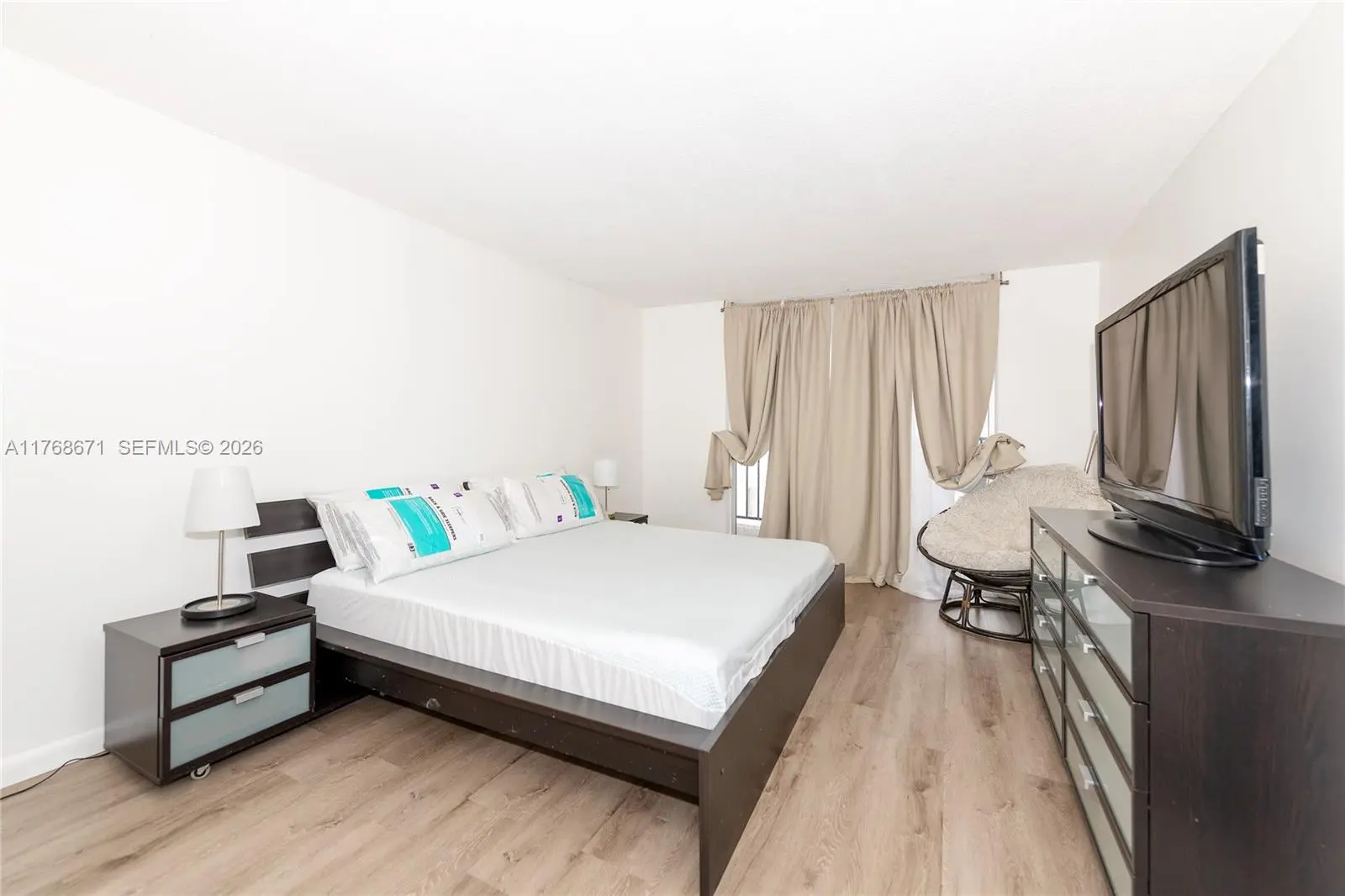 Totally remodeled, bright, elegantly furnished 1/1/1 apartment in a full-service condo. The building features two swimming pools, two gyms, and a tennis court. Covered parking space, plus guest parking.