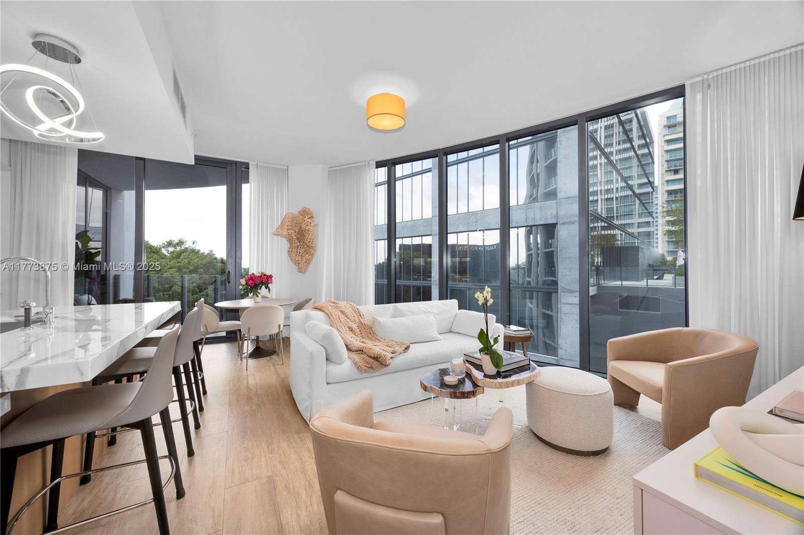 Come home to luxury at Park Grove's Club Residence tower. This 2 bed, 2 bath + den unit features a primary bedroom with lavish shower & double sink vanity & walk-in closet. The Chef's kitchen is a culinary dream, equipped with Italkraft cabinetry, marble countertops, and top-notch Wolf, Sub Zero & ASKO appliances. Enhanced with black out shades and curtains, tv's in both the living and primary suite. Functional den can be a perfect home office. Enjoy the serenity of the Grove from the terrace with garden views. Nestled in the heart of Coconut Grove, Park Grove is designed by the renowned Pritzker prize-winning architect Rem Koolhaas/OMA and presents a resort-inspired lifestyle with lap pool, private cabanas, fitness center & spa. Unit incl's valet parking & is avail for rent for $10k p/mo.