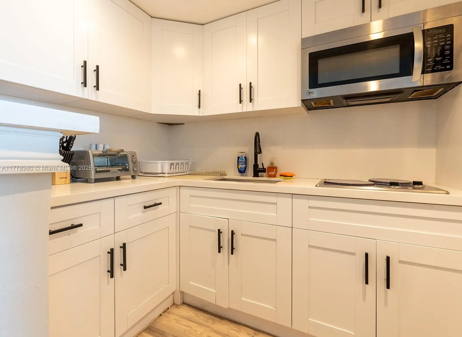 Beautiful first floor studio in the North Bay Village area of Miami. The kitchen has been updated with white hardwood cabinets and stainless steel appliances throughout. The unit has an open balcony facing the pool deck. One of the few buildings in North Bay Village that allow 30-day rentals and short-term rentals (Airbnb & Vrbo ) with a certificate of use license.