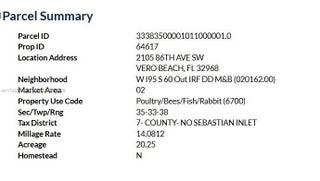 Welcome to your dream homestead or business haven in sunny West Vero Beach, Florida right off the brand new-coming soon I-95/Oslo Exchange for unbeatable access. This 20.25± acre ranch is fully fenced, privacy, and versatility. Property Highlights: 2 Massive Total 7,620 sqft Structure 16’ ceilings, Office space included, Expansive storage for micro-green/hydroponics or convert to a luxurious barn event. Agricultural Zoned A-2 Apiary/Cattle operations. All Equipment incl. Ideal for: Homesteaders & Preppers, Rancheros & Livestock Enthusiasts, Event Venue Creators, Agribusiness Entrepreneurs, Visionaries with big dreams and love for the land, Location, Location, Location: Set in the rapidly developing West Vero Beach corridor, this property is a golden investment in both land and lifestyle.