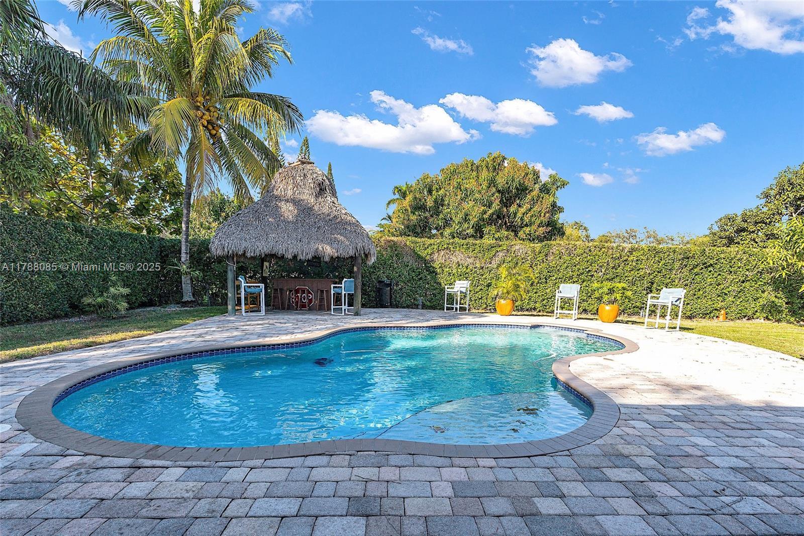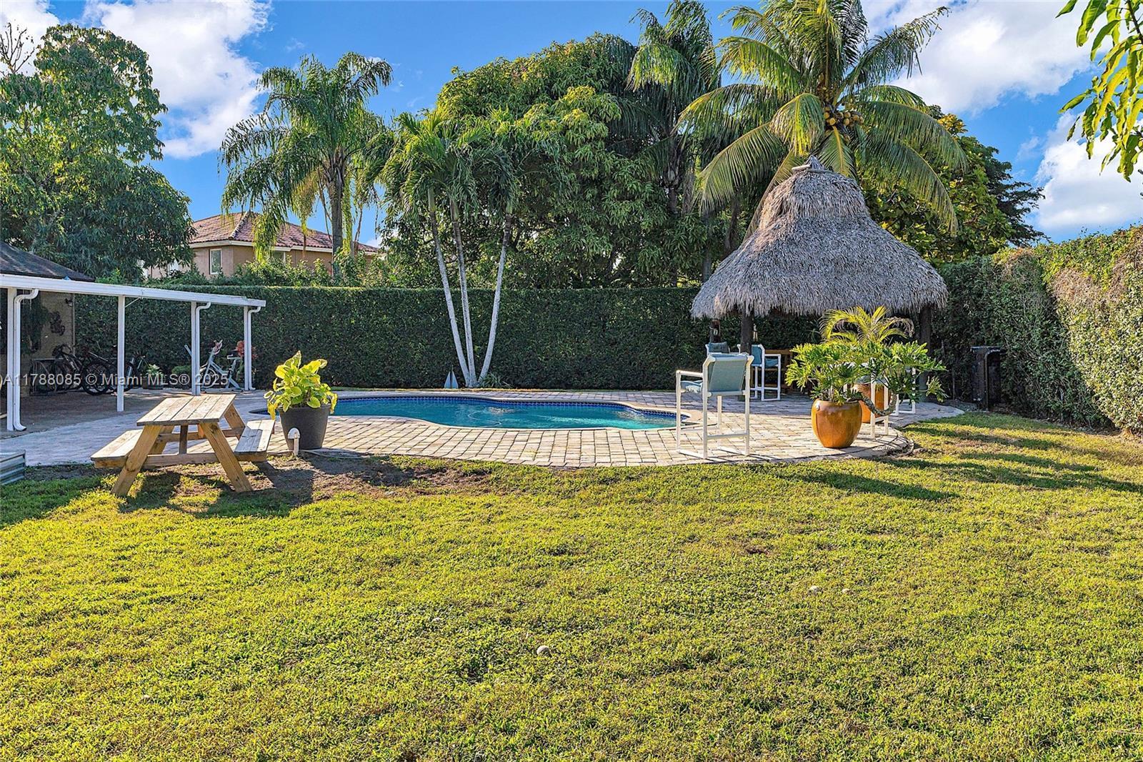 Nestled in sought-after Kings Grant neighborhood, this amazing single-family home offers 3 bedrooms, 2 bathrooms, custom pool & tiki hut perfect for entertaining, covered terrace especially for family parties. Recently painted inside and out. Kitchen and dining area complete with stainless steel appliances. Spacious master bedroom with suite bathroom featuring a vanity sink, and shower. The backyard is fenced with fruit trees, providing a peaceful outdoor retreat. The beautifully maintained front and back lawns add to the home’s curb appeal, complemented by a charming driveway. Situated in a quiet and private cul-de-sac with ample parking for huge parties. Conveniently close to A+ & magnet schools, parks, shopping, and dining options, offering a perfect lifestyle for any size family.