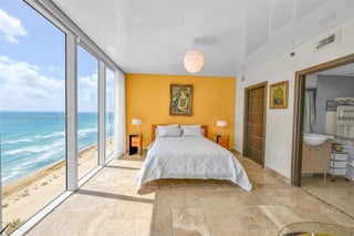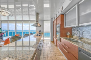 Truly unique NE corner unit with 270° of direct ocean views! Designed for entertaining, this one-of-a-kind residence features a dramatic stretch ceiling, custom finishes, wood doors, marble floors, electric shades, and recessed lighting. The Primary Suite offers his-and-hers dressing rooms and custom walk-in closets. Italian kitchen equipped with premium KitchenAid appliances. Enjoy 5-star resort amenities: a grand 2-story lobby, 24-hour security and valet, five heated pools, and a 50,000 sq. ft. oceanfront spa and fitness center. Resort living at its finest!