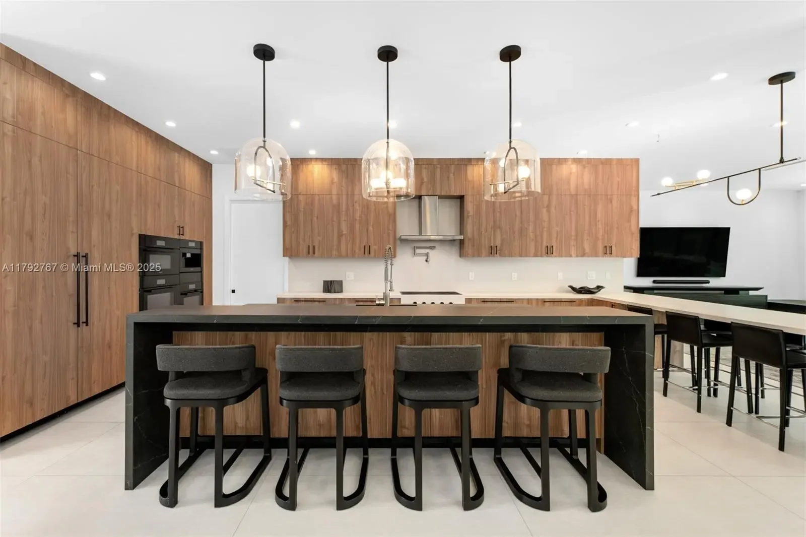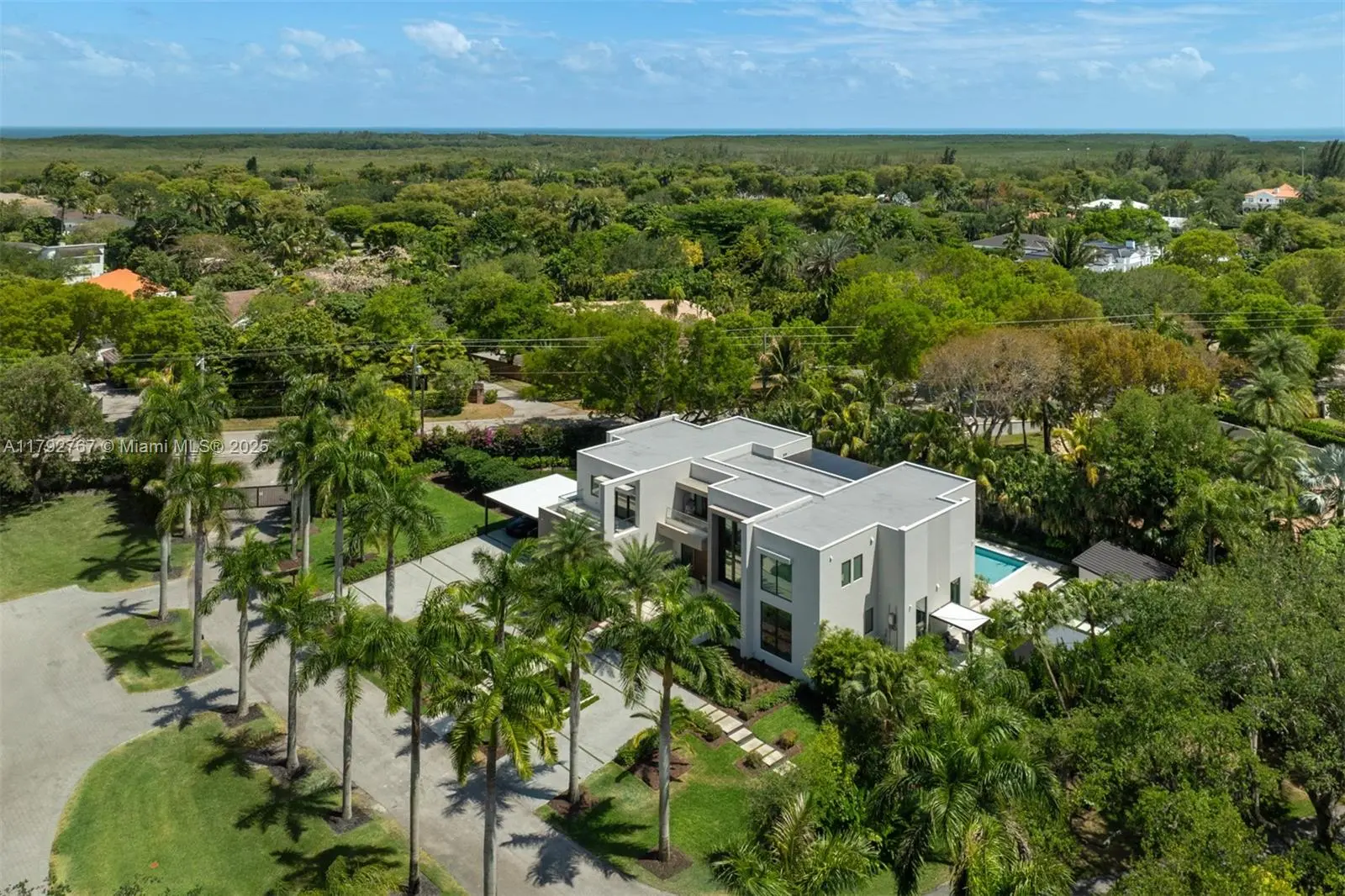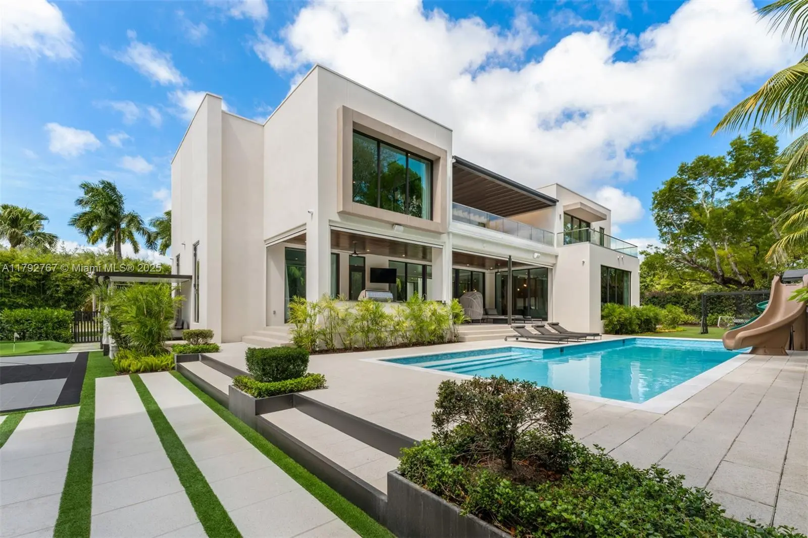 Modern architectural estate in Pinecrest featuring 6 bedrooms, 7.5 bathrooms, & a professional built theater/media room. Thoughtfully designed with an open-concept layout, including a guest bedroom, housekeeping suite, 2-car garage, laundry room, butler’s pantry, & family room on the 1st floor. Gourmet kitchen equipped with Miele and Wolf appliances. Elevator, generator, gas water heaters, & smart home integration. Outdoor highlights feature a summer kitchen, expansive covered terrace with electric screens, & oversized pool. Upstairs, a split floorplan offers a grand primary suite with his-and-hers closets, dual toilets, sinks, & showers, plus three additional bedrooms, each with en-suite baths & private balconies + a common family rm. Located in a secure gated community of only 4 homes.