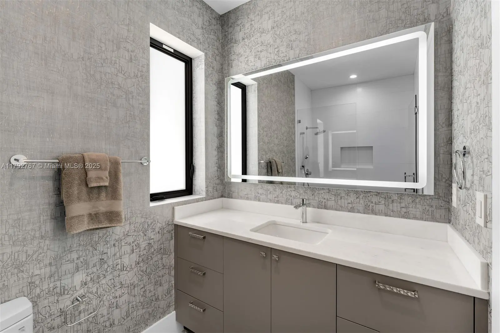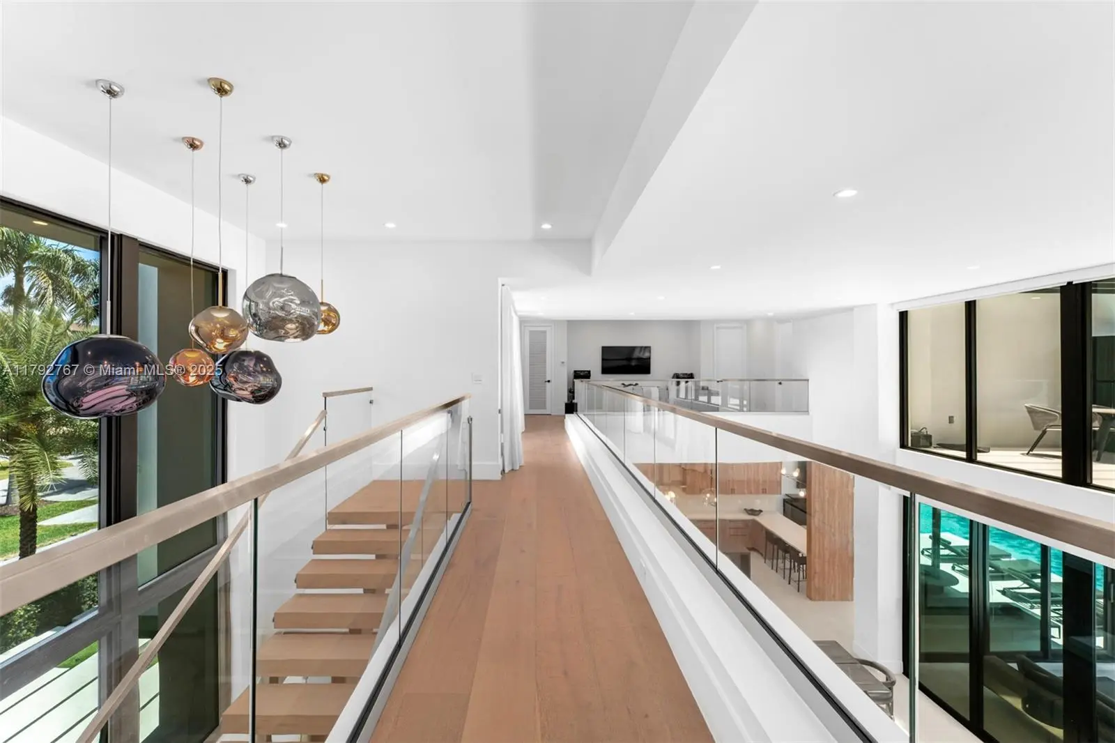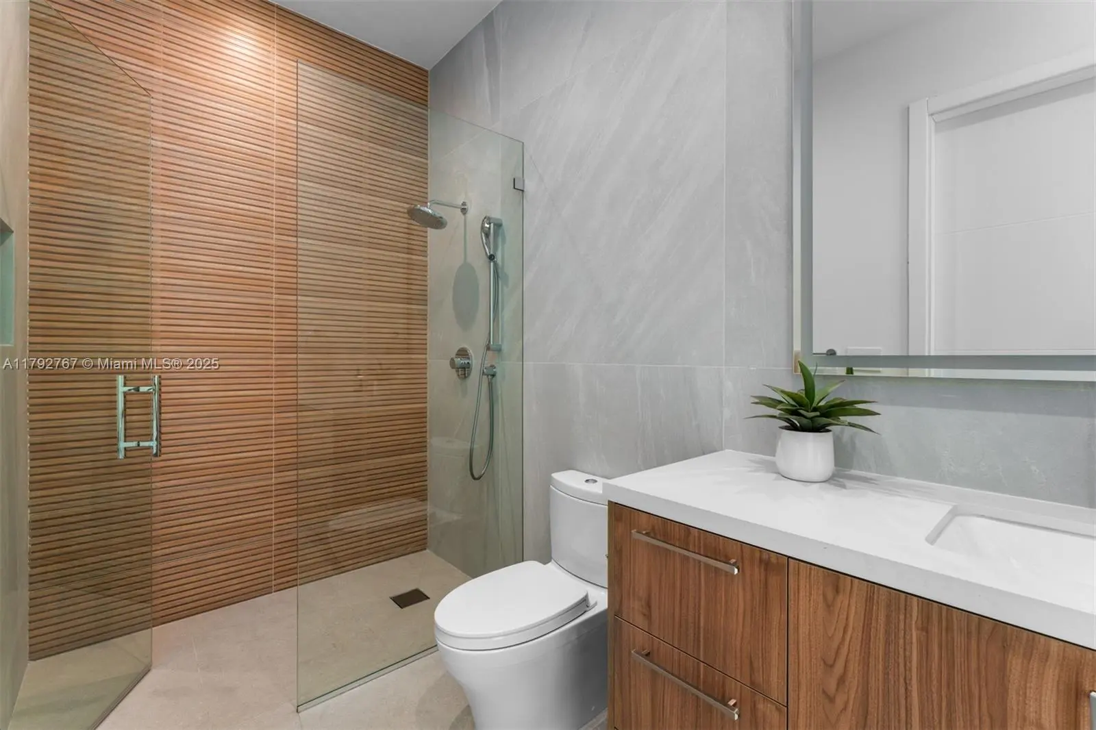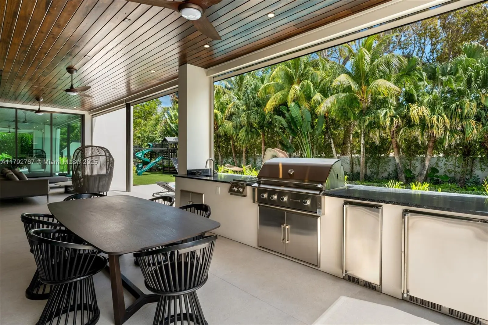 Modern architectural estate in Pinecrest featuring 6 bedrooms, 7.5 bathrooms, & a professional built theater/media room. Thoughtfully designed with an open-concept layout, including a guest bedroom, housekeeping suite, 2-car garage, laundry room, butler’s pantry, & family room on the 1st floor. Gourmet kitchen equipped with Miele and Wolf appliances. Elevator, generator, gas water heaters, & smart home integration. Outdoor highlights feature a summer kitchen, expansive covered terrace with electric screens, & oversized pool. Upstairs, a split floorplan offers a grand primary suite with his-and-hers closets, dual toilets, sinks, & showers, plus three additional bedrooms, each with en-suite baths & private balconies + a common family rm. Located in a secure gated community of only 4 homes.