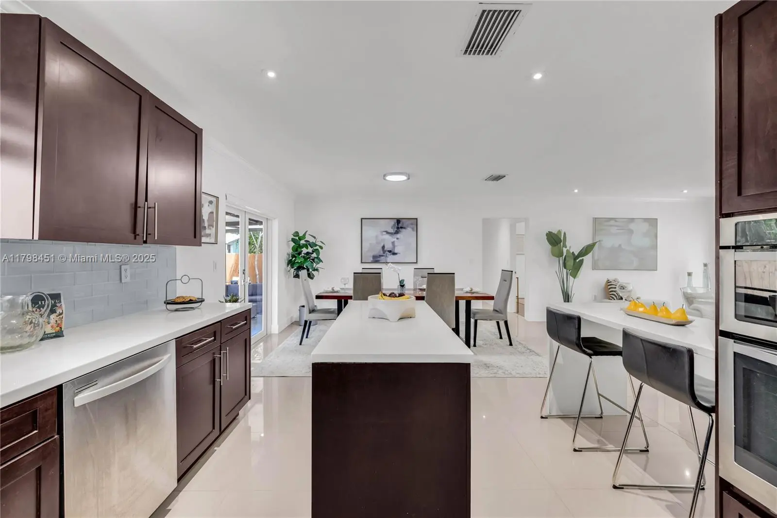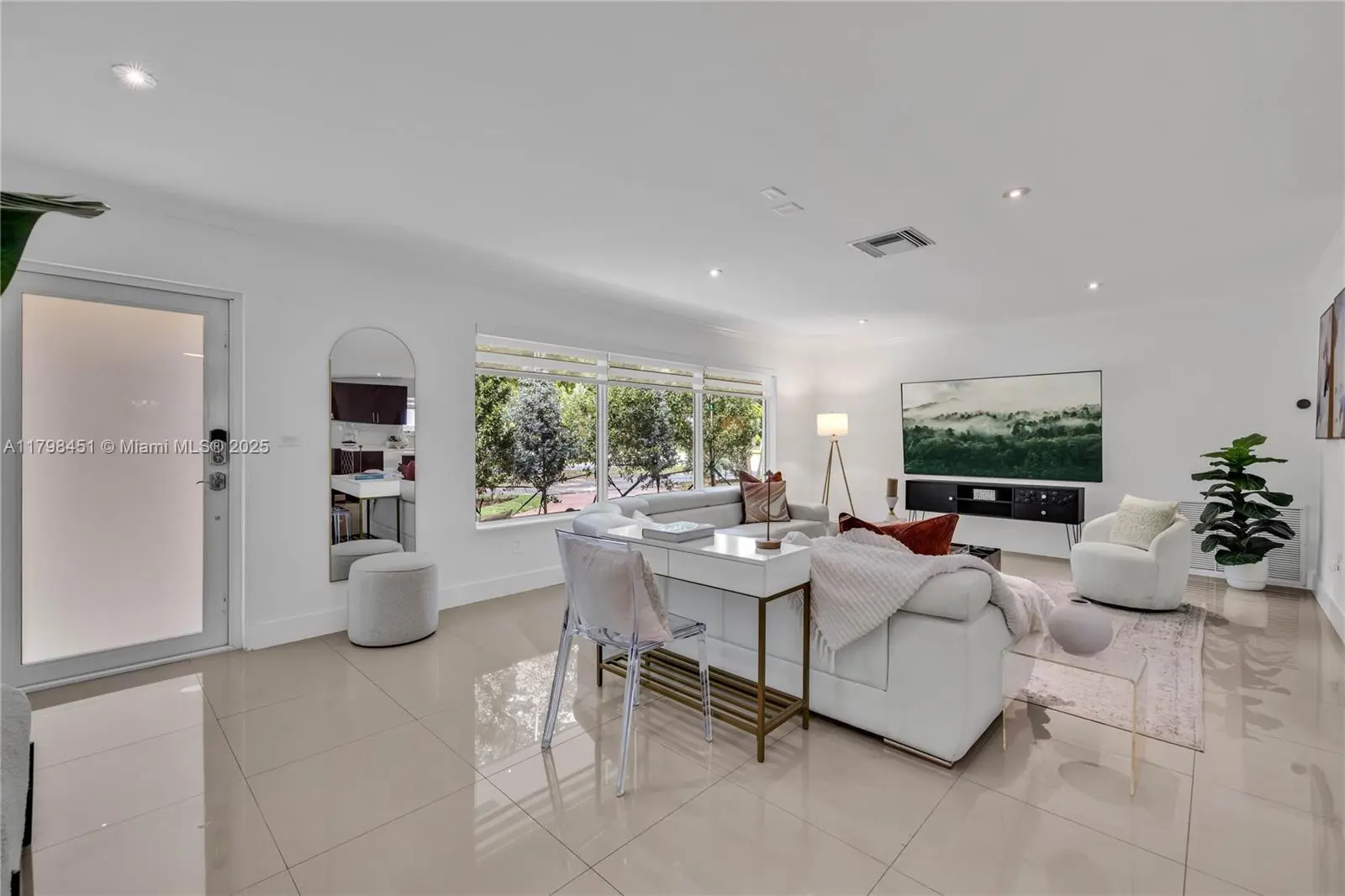 Welcome to the Mid-Mod Ranch in beautiful Biscayne Park! Peaceful, modern, simplicity awaits you in this smartly-updated three + bed, two bath, sprawling midcentury modern home, nestled between lush medians and picture perfect canopy trees in an idyllic park-like setting. Great features throughout: a welcoming front porch; expansive open-flow living; bright dining; spacious double island kitchen; three privately stacked bedrooms, including the dreamy principal ensuite retreat with large walk-in closet; an extra “flex room” pocket wing perfect as guest nest, office, gym, play room, or zen den; covered rear entertainment patio; new metal roof; impact windows; lush landscaping; an enclosed, attached two car garage; and parking galore. All in a fantastic location in the heart of “The Park.”