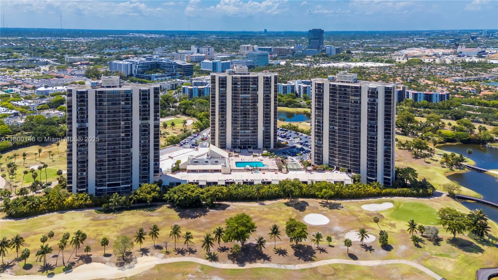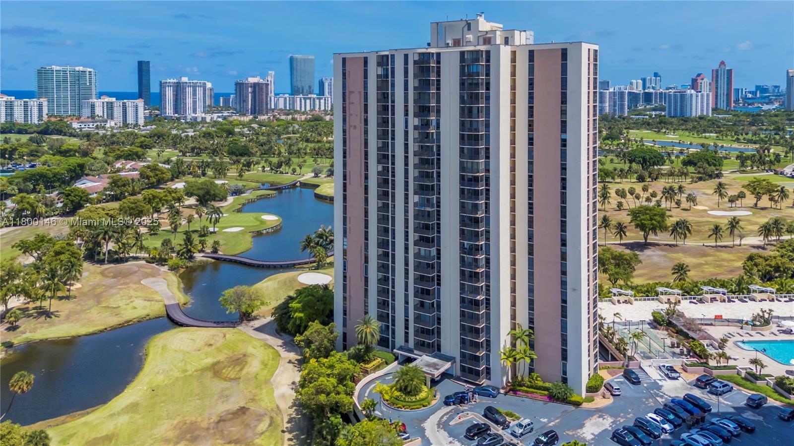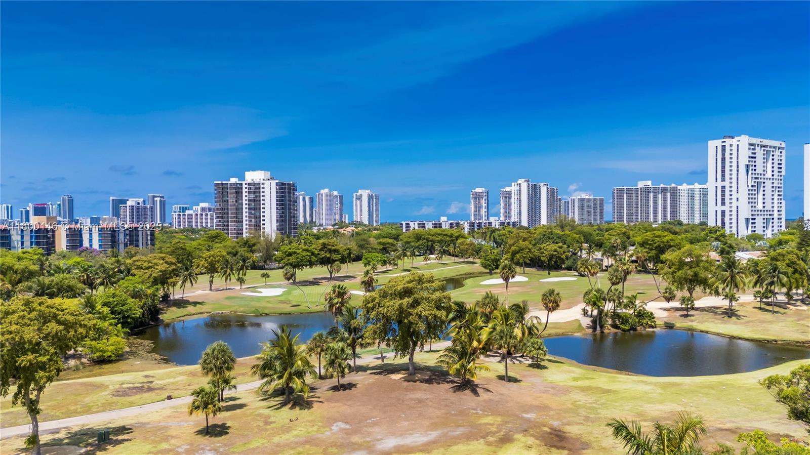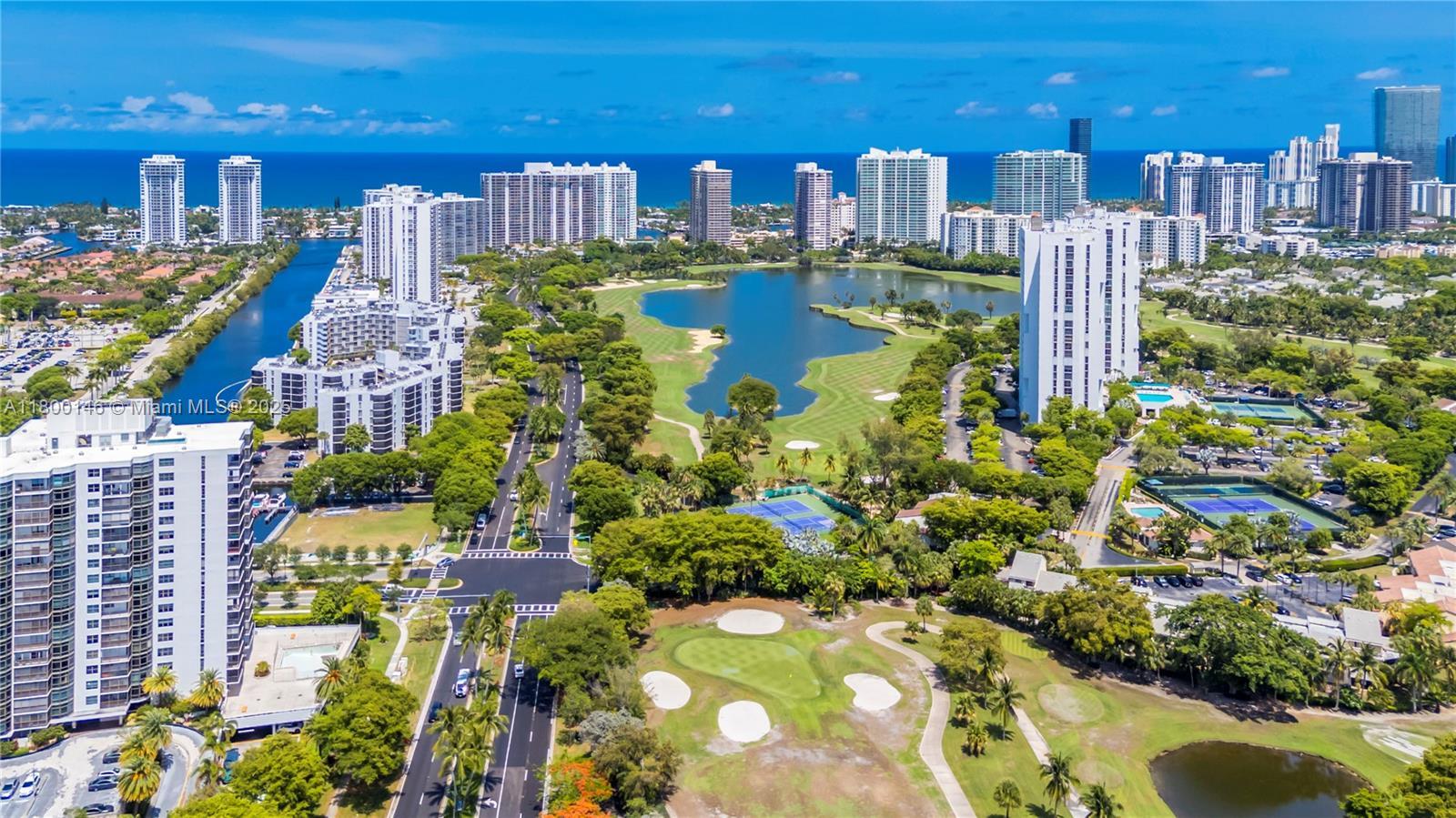 FULLY UPDATED 1BR/1.5BA unit with stunning panoramic views of golf course, city line & pool! This bright and spacious condo features MODERN AND OPEN KITCHEN WITH QUARTZ COUNTER TOPS & STAINLESS STEEL APPLIACNCES, sleek porcelain tile floors throughout, freshly painted interiors, UPDATED bathrooms ALL IMPACT WINDOWS AND SLINDING GLASS W/ BLACKOUT ELECTRIC BLINDS. A/C 2024! Includes 24/7 security, with a renovated lobby and hallways, covered garage parking, and unlimited guest parking. Amenities include pool, sauna, jacuzzi, gym, clubhouse, card room, and library. Maintenance covers water, cable, flood insurance, fumigation, and assigned garage parking. Walk to Aventura Mall, restaurants, houses of worship, and the 3-mile path. Easy access to I-95 and future Brightline station.