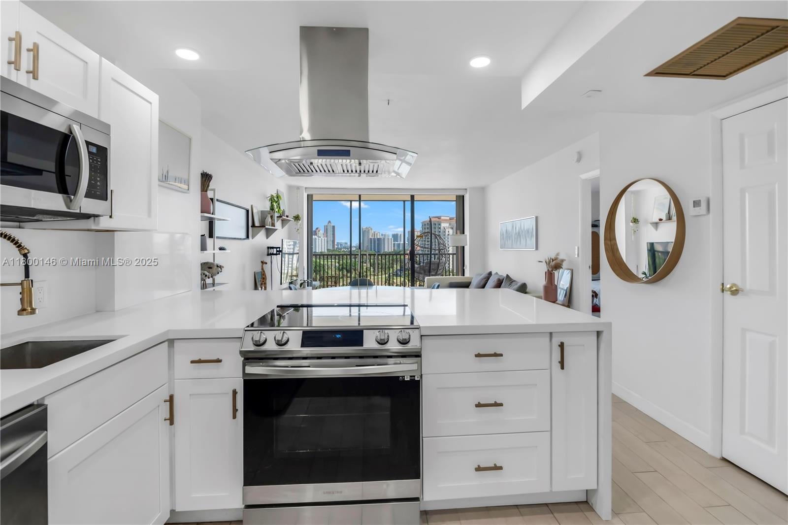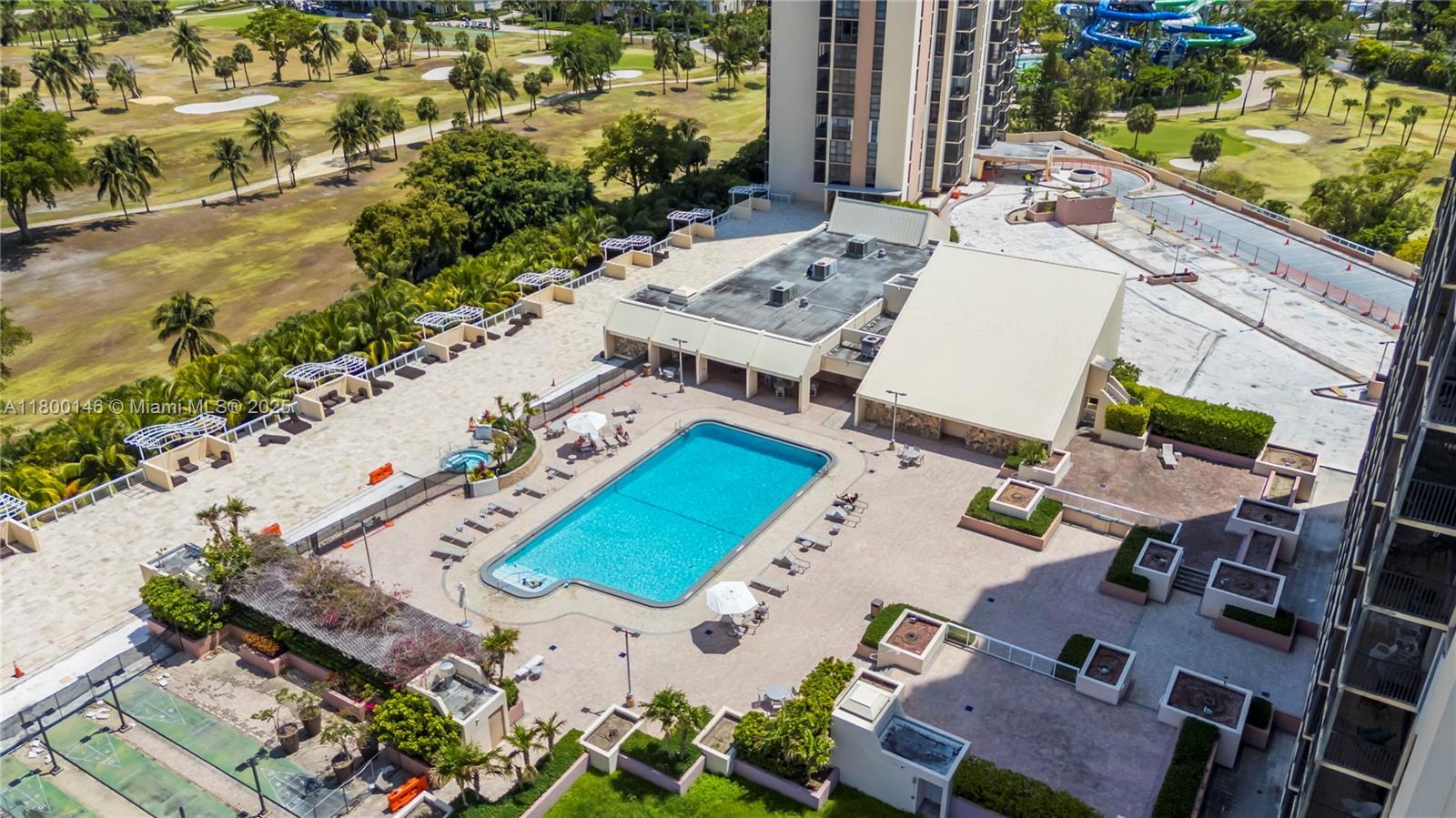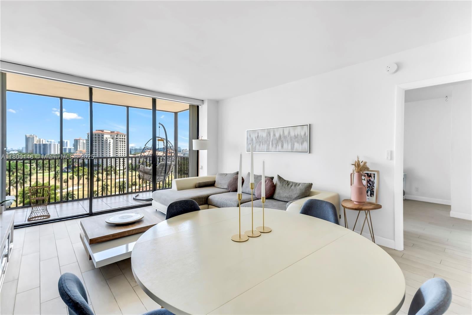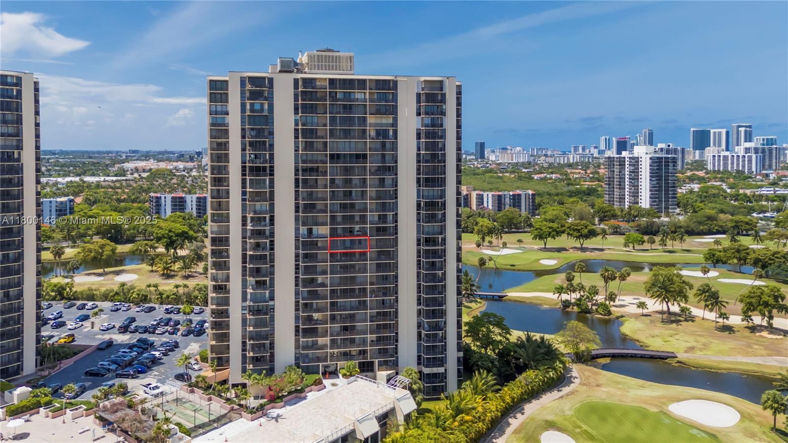 FULLY UPDATED 1BR/1.5BA unit with stunning panoramic views of golf course, city line & pool! This bright and spacious condo features MODERN AND OPEN KITCHEN WITH QUARTZ COUNTER TOPS & STAINLESS STEEL APPLIACNCES, sleek porcelain tile floors throughout, freshly painted interiors, UPDATED bathrooms ALL IMPACT WINDOWS AND SLINDING GLASS W/ BLACKOUT ELECTRIC BLINDS. A/C 2024! Includes 24/7 security, with a renovated lobby and hallways, covered garage parking, and unlimited guest parking. Amenities include pool, sauna, jacuzzi, gym, clubhouse, card room, and library. Maintenance covers water, cable, flood insurance, fumigation, and assigned garage parking. Walk to Aventura Mall, restaurants, houses of worship, and the 3-mile path. Easy access to I-95 and future Brightline station.