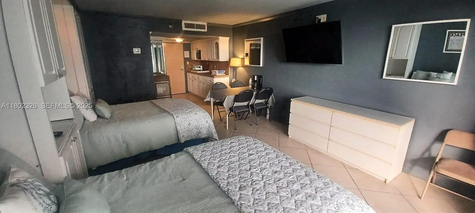 Oceanfront studio located in Sunny Isles Beach, within walking distance to shops, restaurants, and daily conveniences. The unit features two queen-size beds and one separate bathroom. A new AC unit installed in 09/2025, along with new railings, blind dividers, card-key entry door, and impact sliding glass door, enhance both comfort and security. Situated on the 11th and top floor, the unit enjoys direct beach access and unobstructed ocean views. HOA includes utilities and access to amenities such as gym, pool services, complimentary lounge chairs and umbrellas, and valet parking.