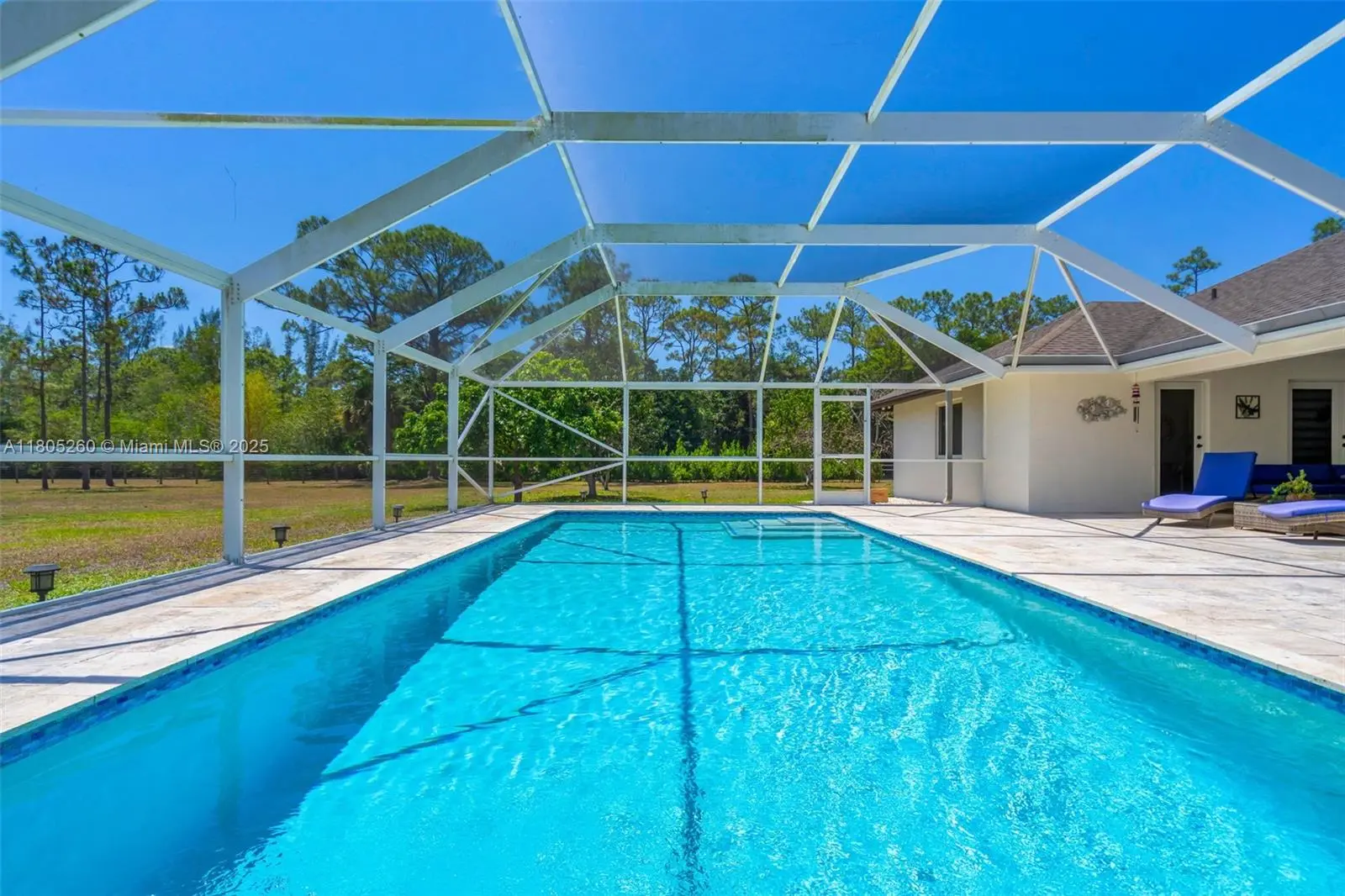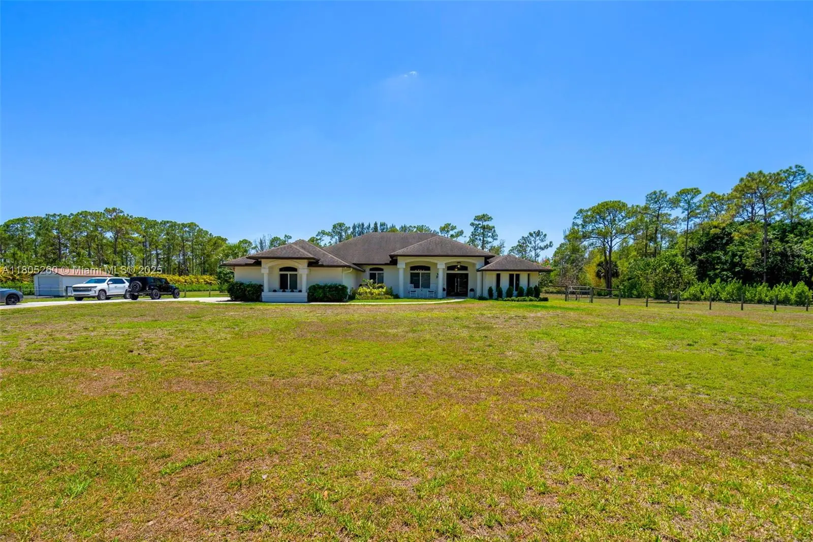 Experience the equestrian lifestyle on 5 pristine acres in Caloosa. This elegant 5-bed, 3-bath CBS home, built in 2007, boasts an open split floor plan, a gourmet kitchen with quartz countertops, and stunning views of the screened saltwater pool, added in 2019. Enjoy a 3-car garage, two storage sheds, and a fully fenced yard. Modern upgrades include a 24KW Generac propane generator, reverse osmosis water system, and impact windows and doors installed in 2022. Discover luxury, tranquility, and space all in one extraordinary property. Perfectly designed for both entertaining and everyday living, this estate captures the essence of rural charm with modern convenience.