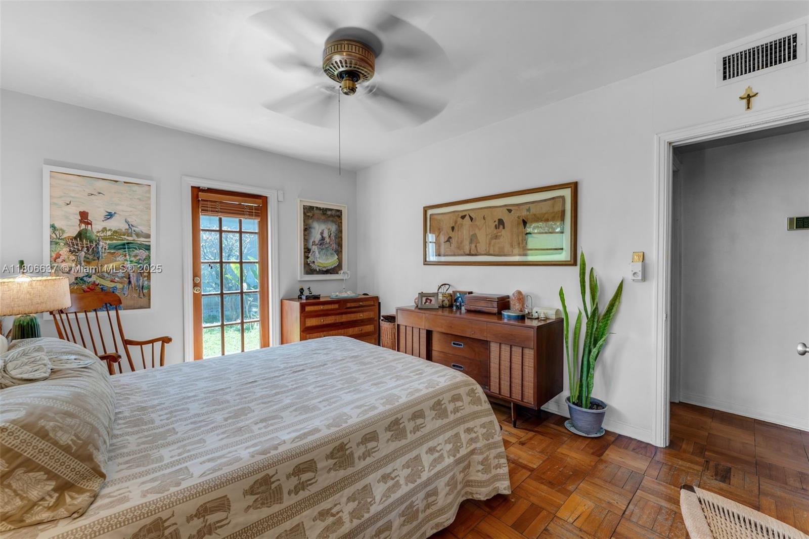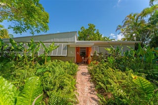 Welcome to Casa Palmera! This mid-century modern gem sits on a quiet cul-de-sac located just minutes from Coconut Grove. Nestled in a lush tropical garden, this home boasts true modernist style with large windows, beamed ceilings, original terrazzo and parquet wood floors. The bathrooms have been tastefully renovated to match the original design intent. This home can be enjoyed as a 3/2 with a separate 1/1 or can easily be transformed back into a 4/3.