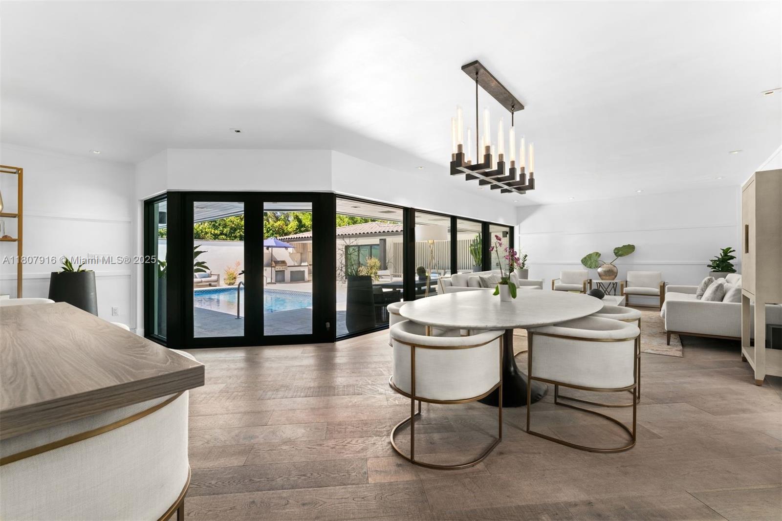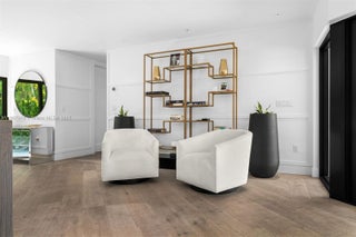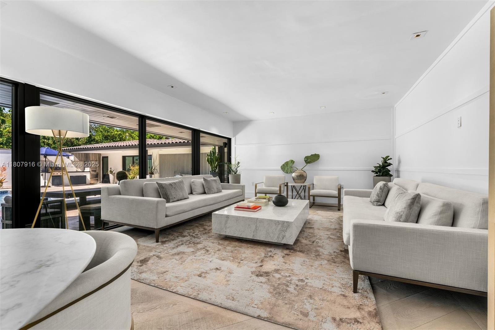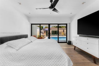 An exquisite sanctuary of luxury nestled in a prestigious, guarded community. Curated by renowned designer James Duncan, this stunning L-shaped estate surounds an inviting pool, with 4 bedrooms, 5 full baths, and 2,618 sqft of living space. Its modern, state-of-the-art kitchen outfitted with high-end appliances, sleek cabinetry, and custom finishes and rich wood-plank flooring lends warmth and sophistication throughout the home. The guest suite boasts a custom-designed bathroom, an expansive cabana bathroom, outdoor sitting areas, and a summer kitchen perfect for hosting memorable dinners under the sun or stars. Whether lounging poolside, hosting lavish parties, or enjoying quiet evenings, this property combines modern luxury and an unrivaled lifestyle of sophistication and comfort.