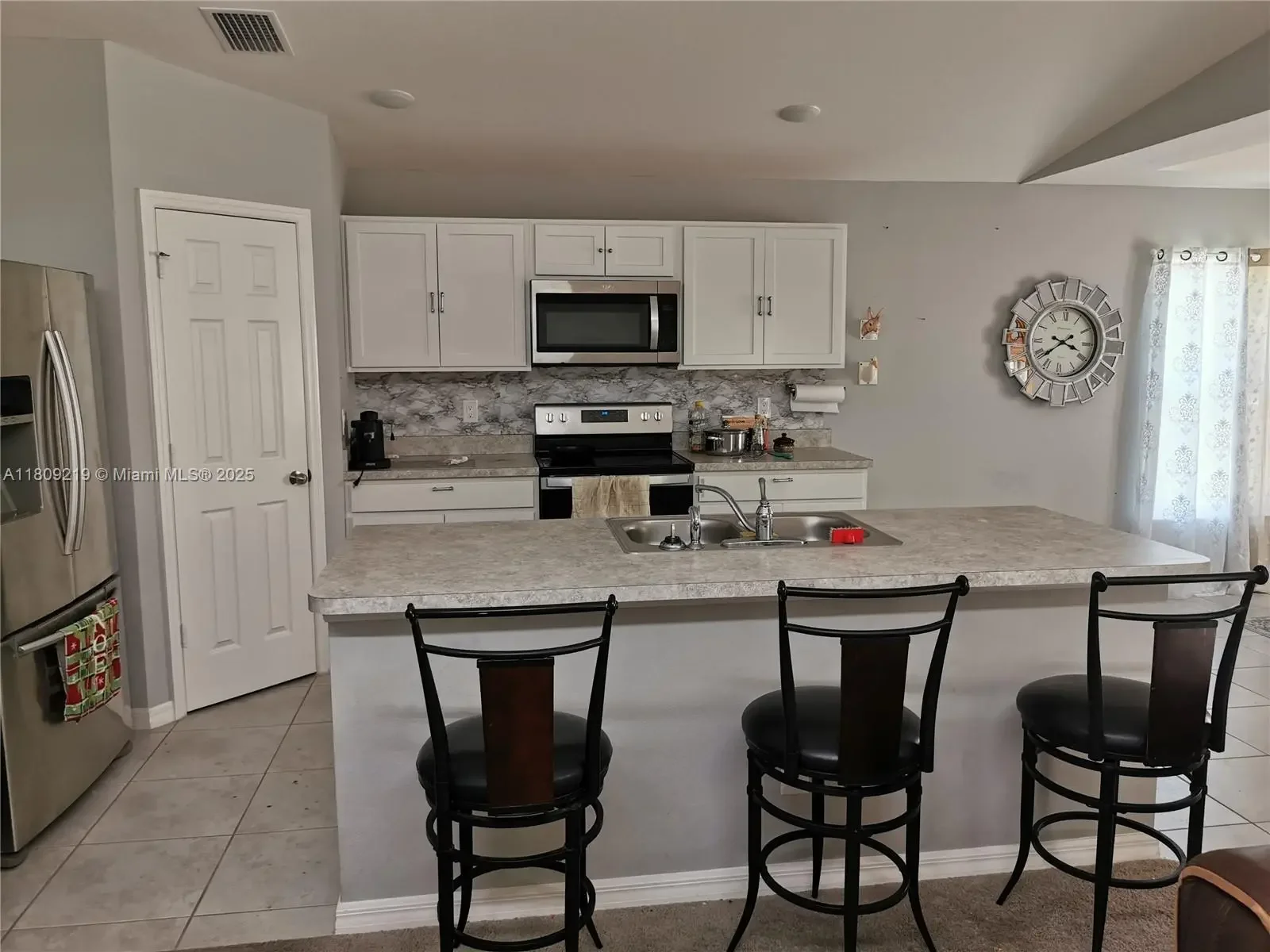 Don't miss out on this barely 3-year-old home with 4 bedrooms, 2 baths, and over 1800 sq ft of living in the fast-growing NE Cape Coral in Southwest Florida. The property is fully fenced for more privacy. Solar panels are in place to significantly reduce your electric bill. A very central location that allows you to enjoy the tranquility of this beautiful town while being close to schools, shopping centers, restaurants, and major roads. NOT in a FLOOD ZONE. Open floor plan, large master bedroom, and master bath with huge walk-in closet. Other house features are an eat-in breakfast counter, an undertrust lanai, and an indoor laundry room. Schedule your showing today before it's too late. Se Habla Español.
