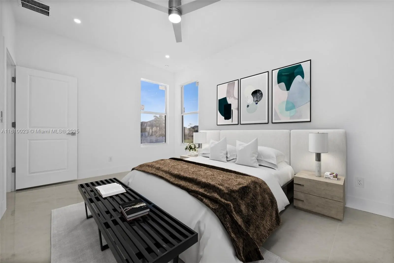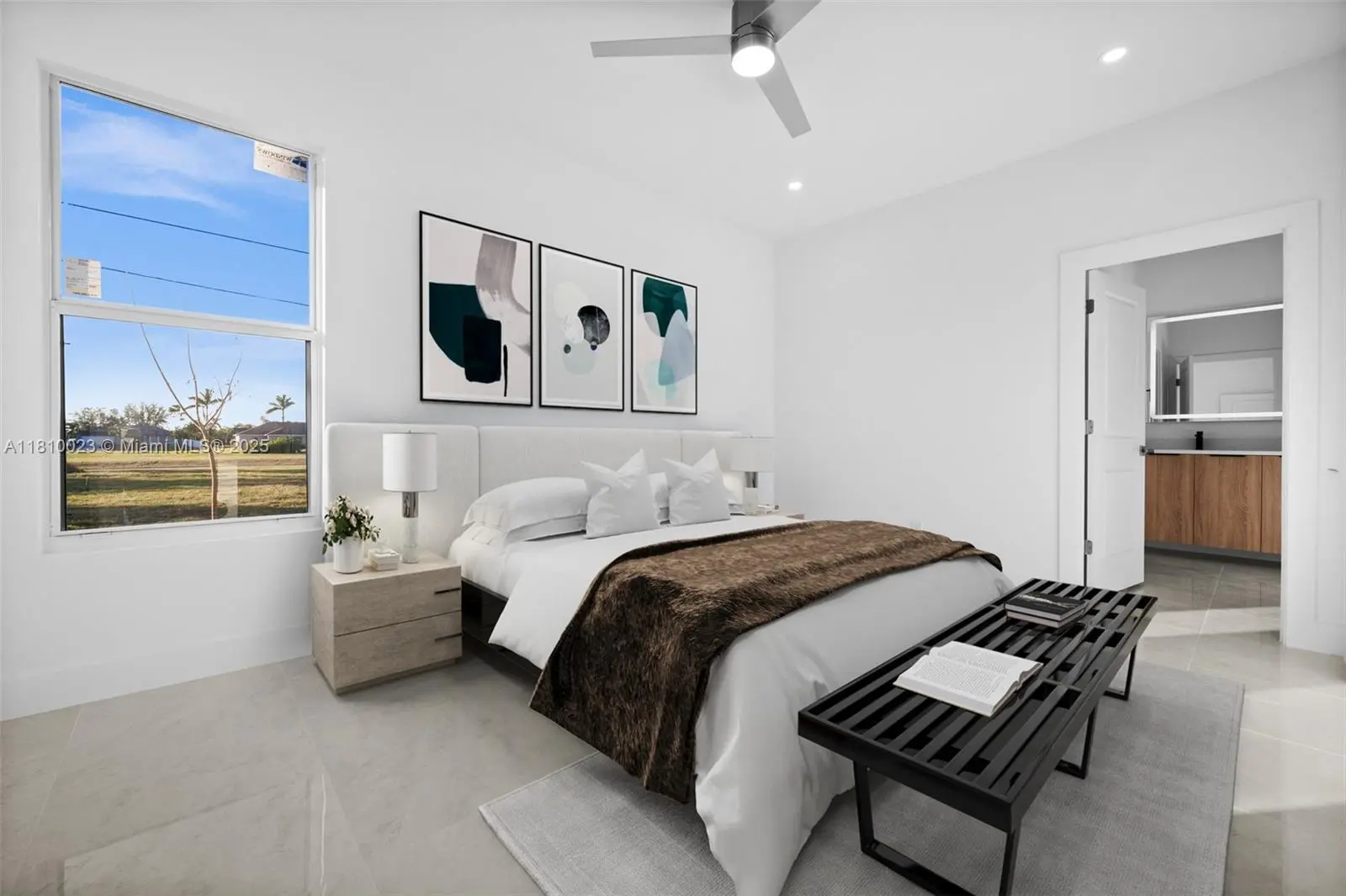 New concrete block construction Dec 2024. Modern design with 1,813 SF under AC and 2,403 gross area. 4 bed/3 bath. Impact resistant doors and windows. Complete modern kitchen appliances. Washer/dryer. Six remote controlled ceiling fans. Main bedroom with walk-in closet and bathroom with dual sinks. Automatic sprinkler system. 2-car garage with **wall mounted wet/dry vacuum cleaner** Nice quiet street and good neighbors. Can be seen anytime... call for lockbox.